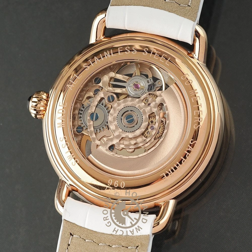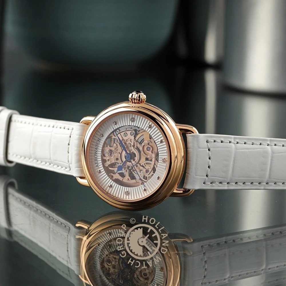 This Aerowatch watch has a case made of stainless steel with a diameter of 35 mm and is fitted with a leather band. Inside the case lies a Sellita movement and the watch features a Sapphire crystal.