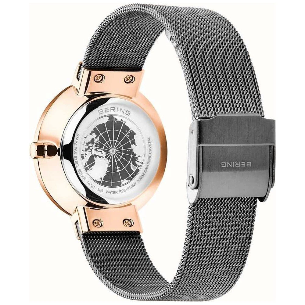 This Bering watch has a case made of stainless steel with a diameter of 31 mm and is fitted with a metal band. Inside the case lies a Miyota movement and the watch features a Sapphire crystal.