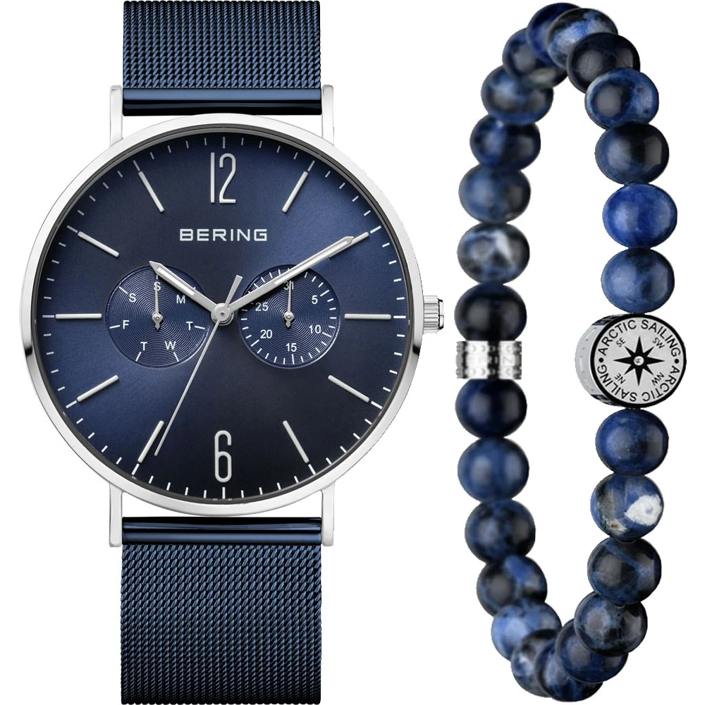 This Bering watch has a case made of stainless steel with a diameter of 40 mm and is fitted with a metal band. Inside the case lies a Seiko Instruments Inc. movement and the watch features a Sapphire crystal.