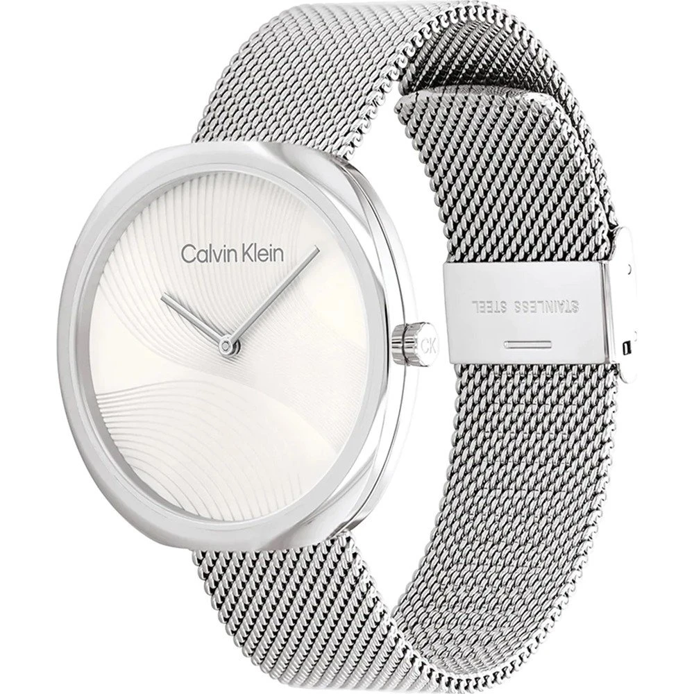 This Calvin Klein watch has a case made of stainless steel with a diameter of 36.6 mm and is fitted with a metal band. Inside the case lies a Miyota movement and the watch features a Mineral crystal.