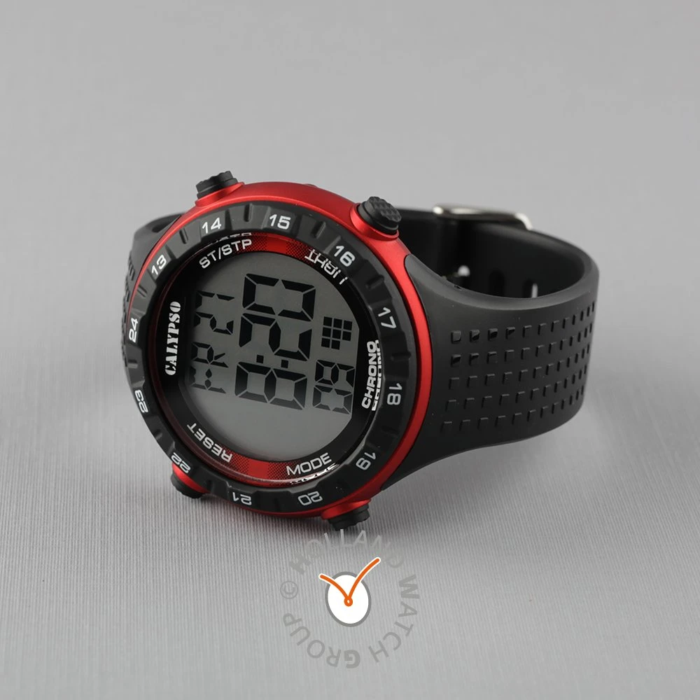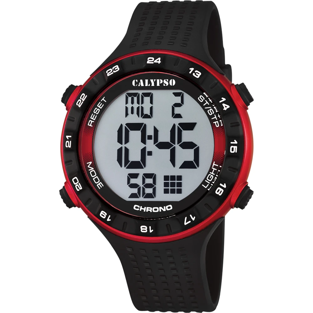 This Calypso watch has a case made of plastic with a diameter of 50 mm and is fitted with a plastic / resin band. Inside the case lies a Kronaby movement and the watch features a Plexi crystal.