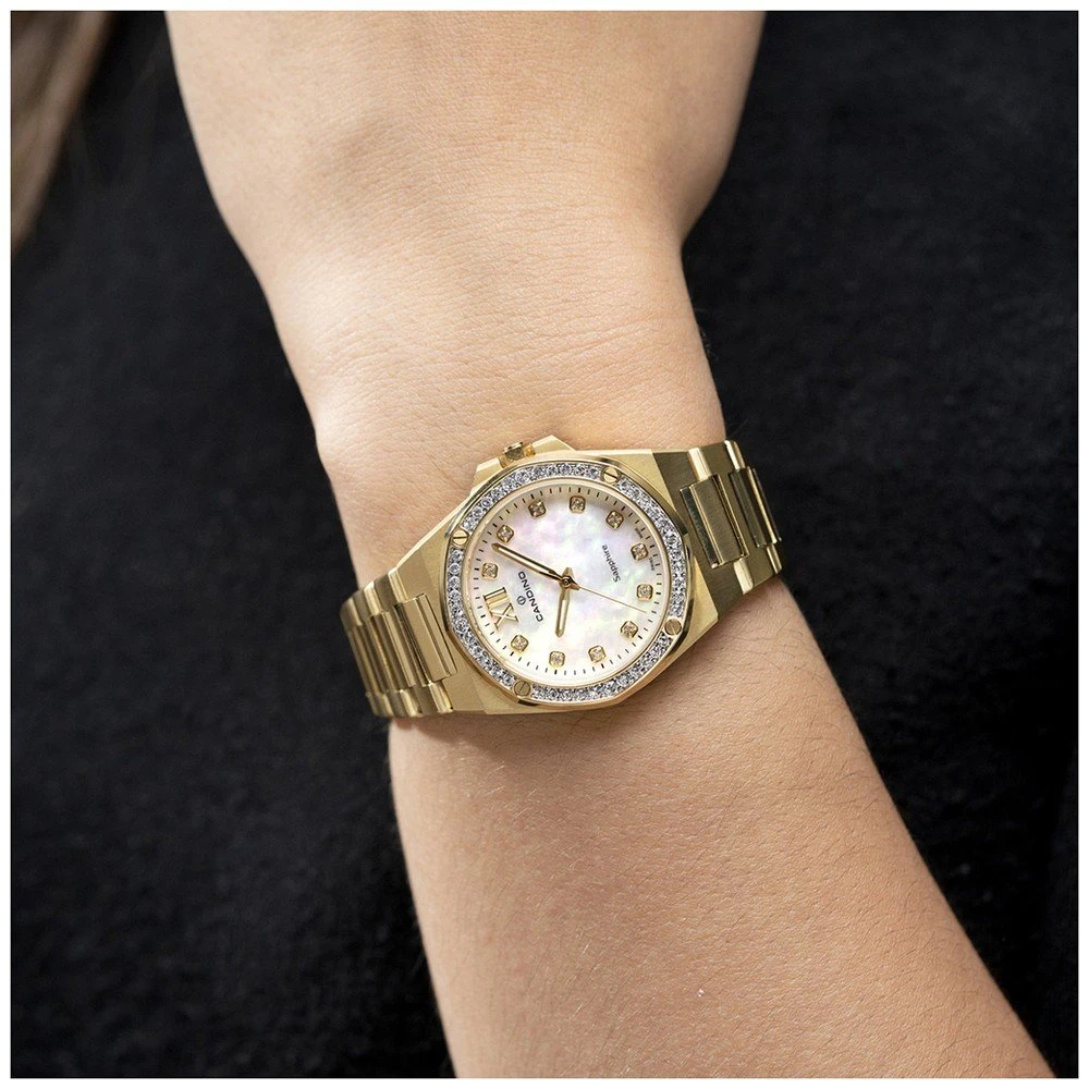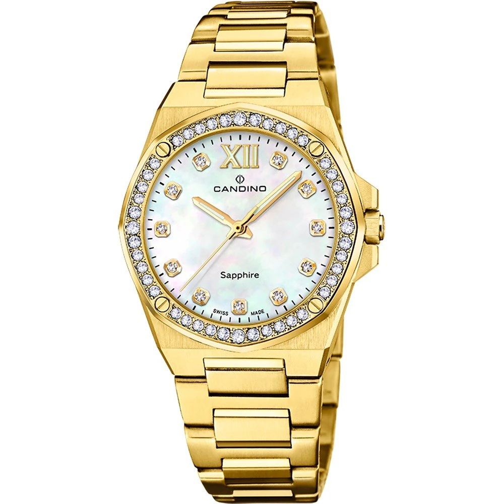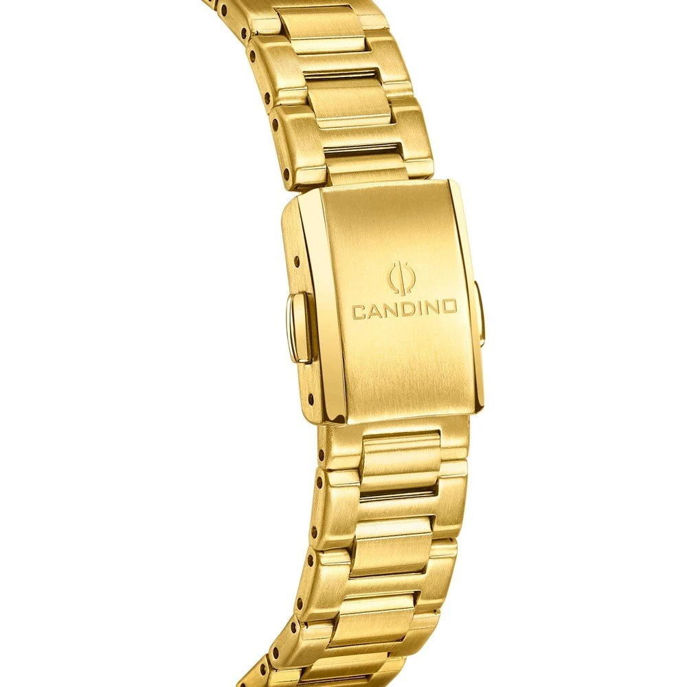 This Candino watch has a case made of stainless steel with a diameter of 33 mm and is fitted with a metal band. Inside the case lies a Ronda movement and the watch features a Sapphire crystal.