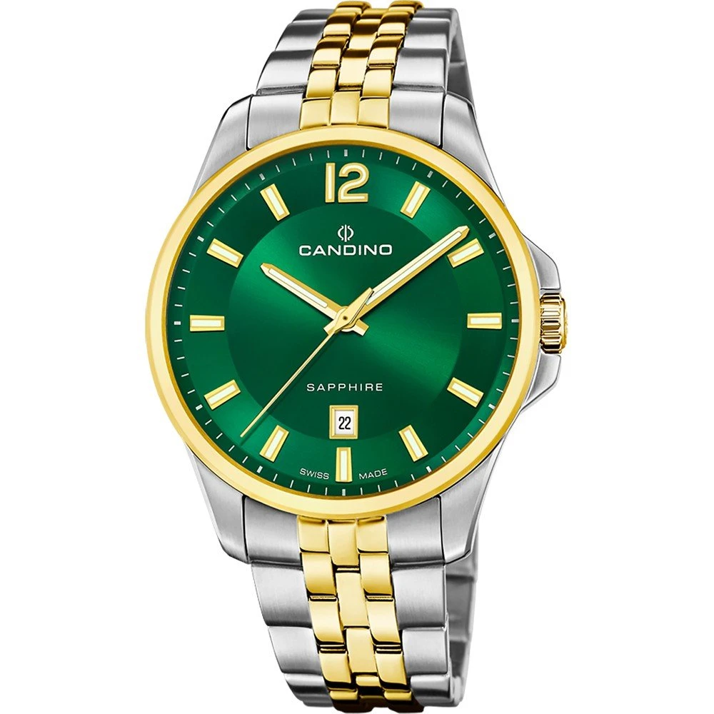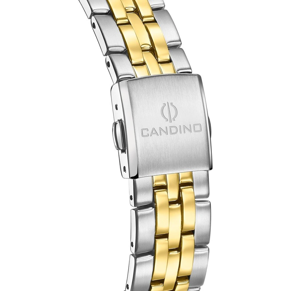 This Candino watch has a case made of stainless steel with a diameter of 42 mm and is fitted with a metal band. Inside the case lies a Ronda movement and the watch features a Sapphire crystal.