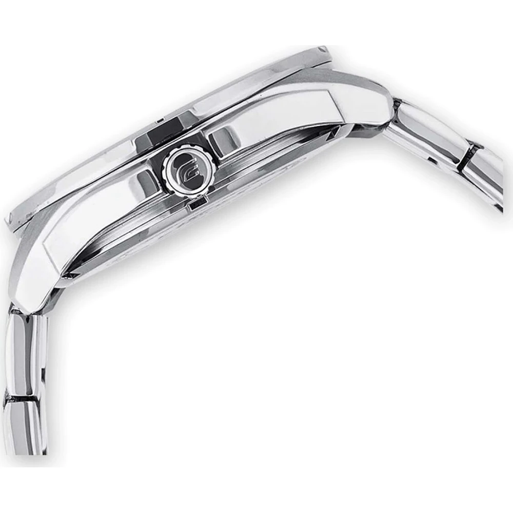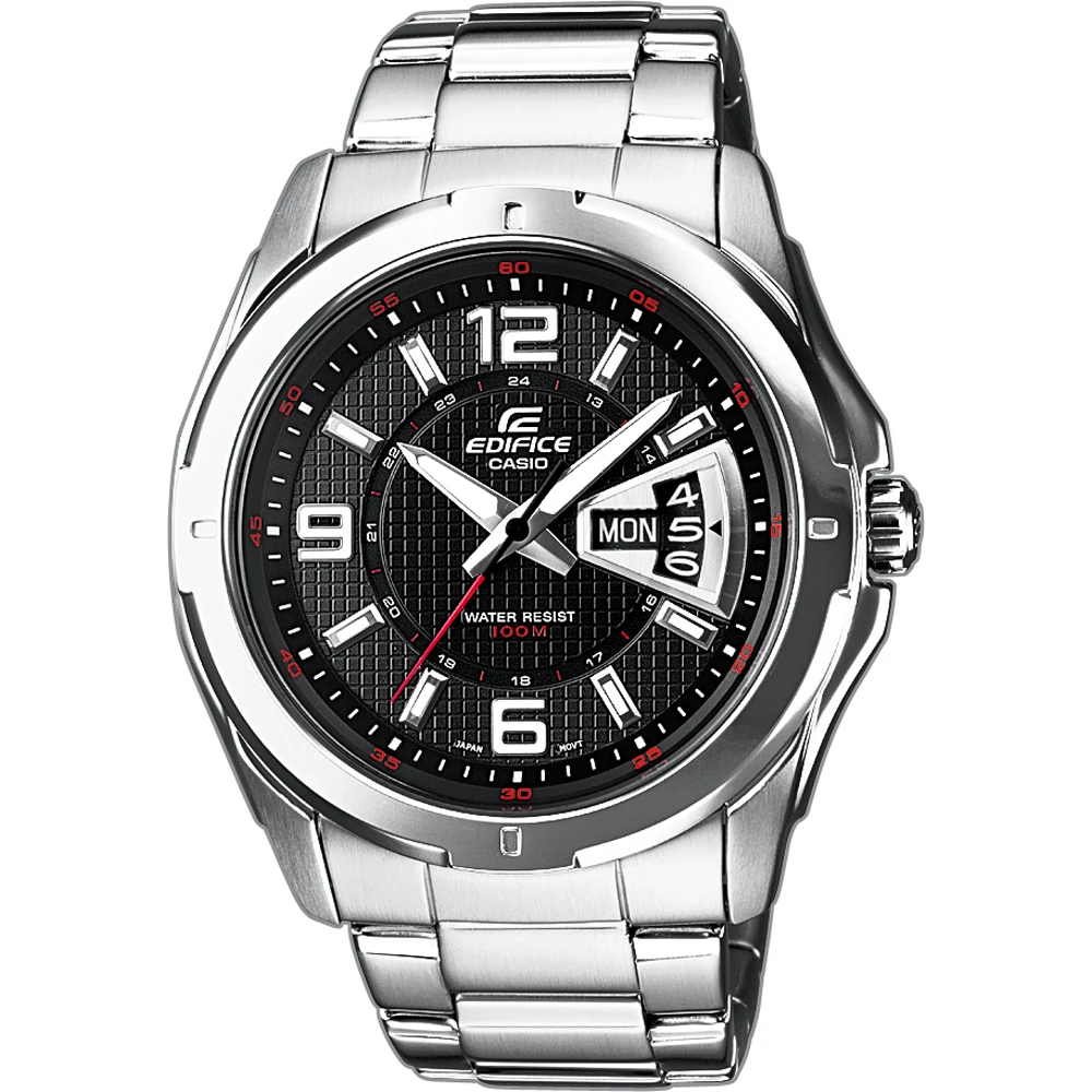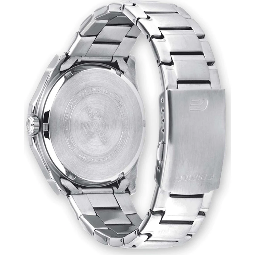 This Casio Edifice watch has a case made of stainless steel with a diameter of 44.8 mm and is fitted with a metal band. Inside the case lies a Casio movement and the watch features a Mineral crystal.