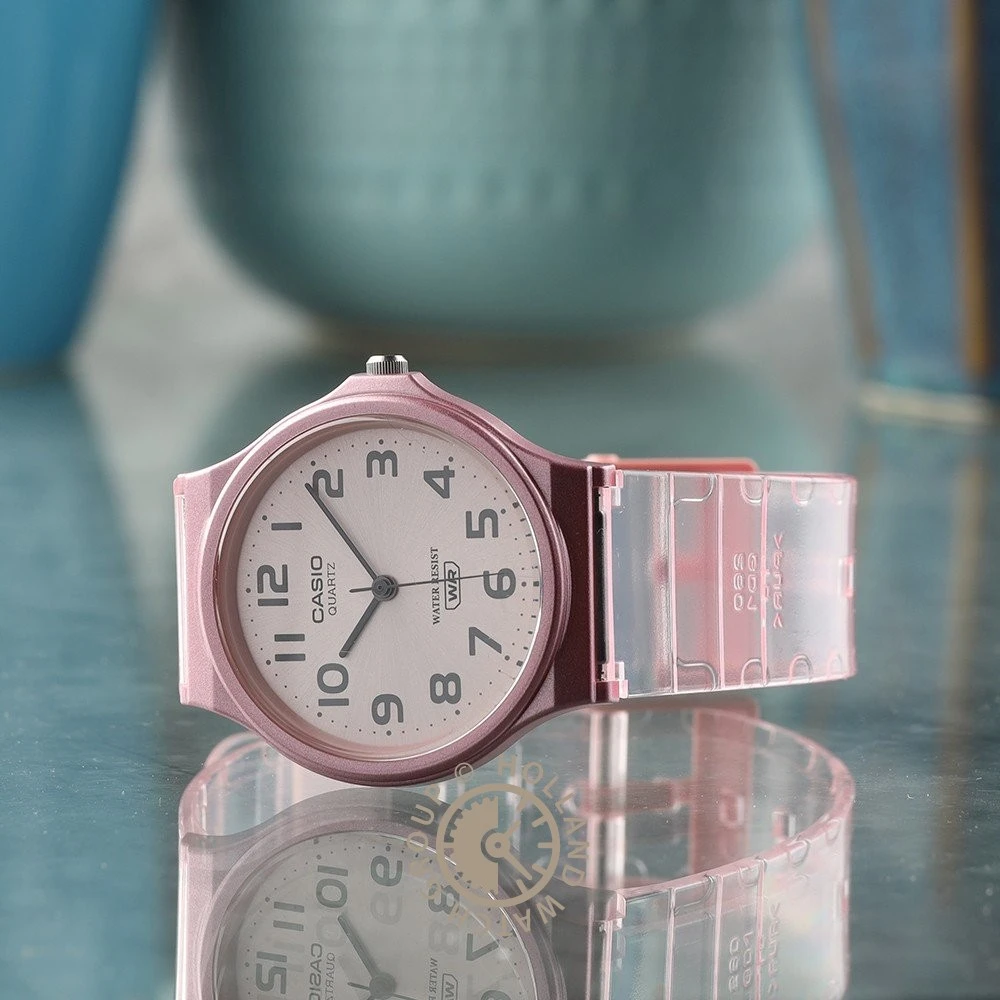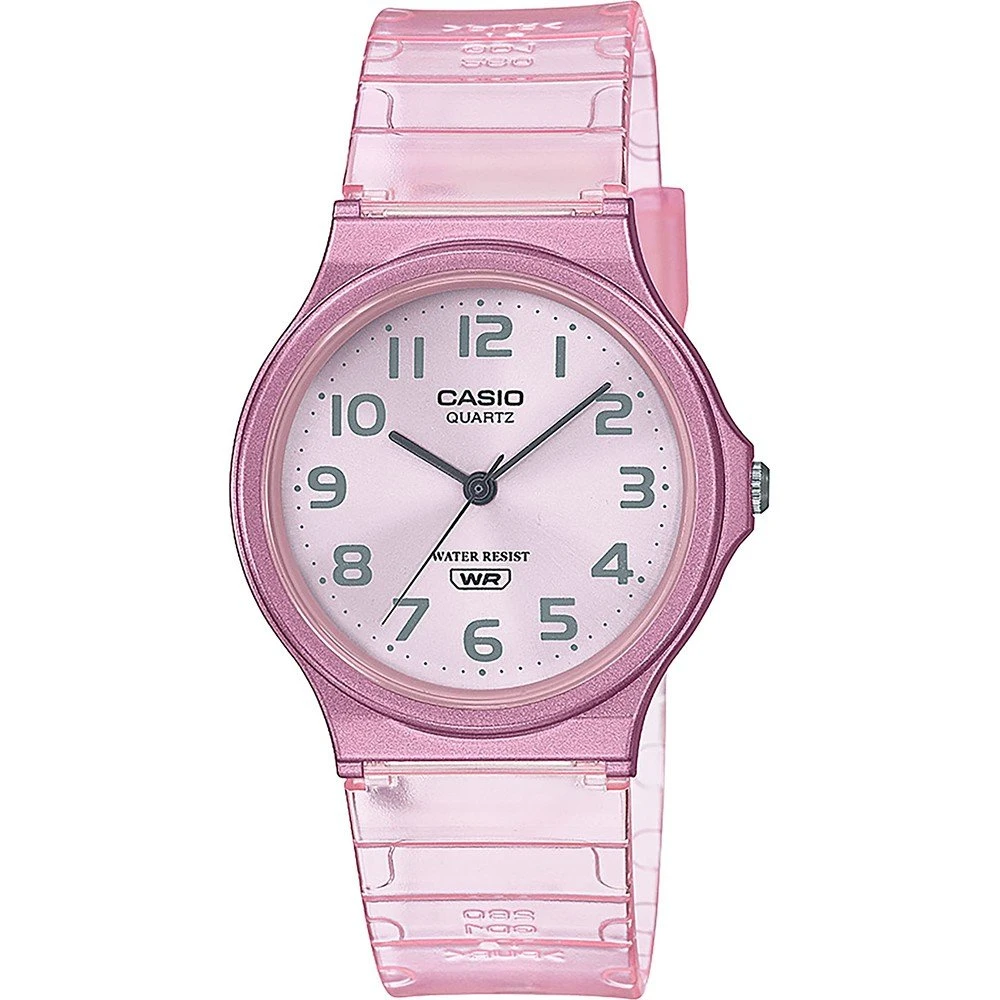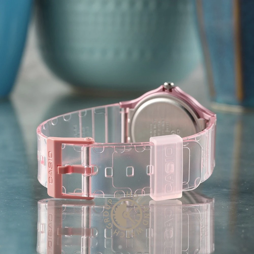 This Casio watch has a case made of plastic with a diameter of 34.9 mm and is fitted with a plastic / resin band. Inside the case lies a Casio movement and the watch features a Plexi crystal.