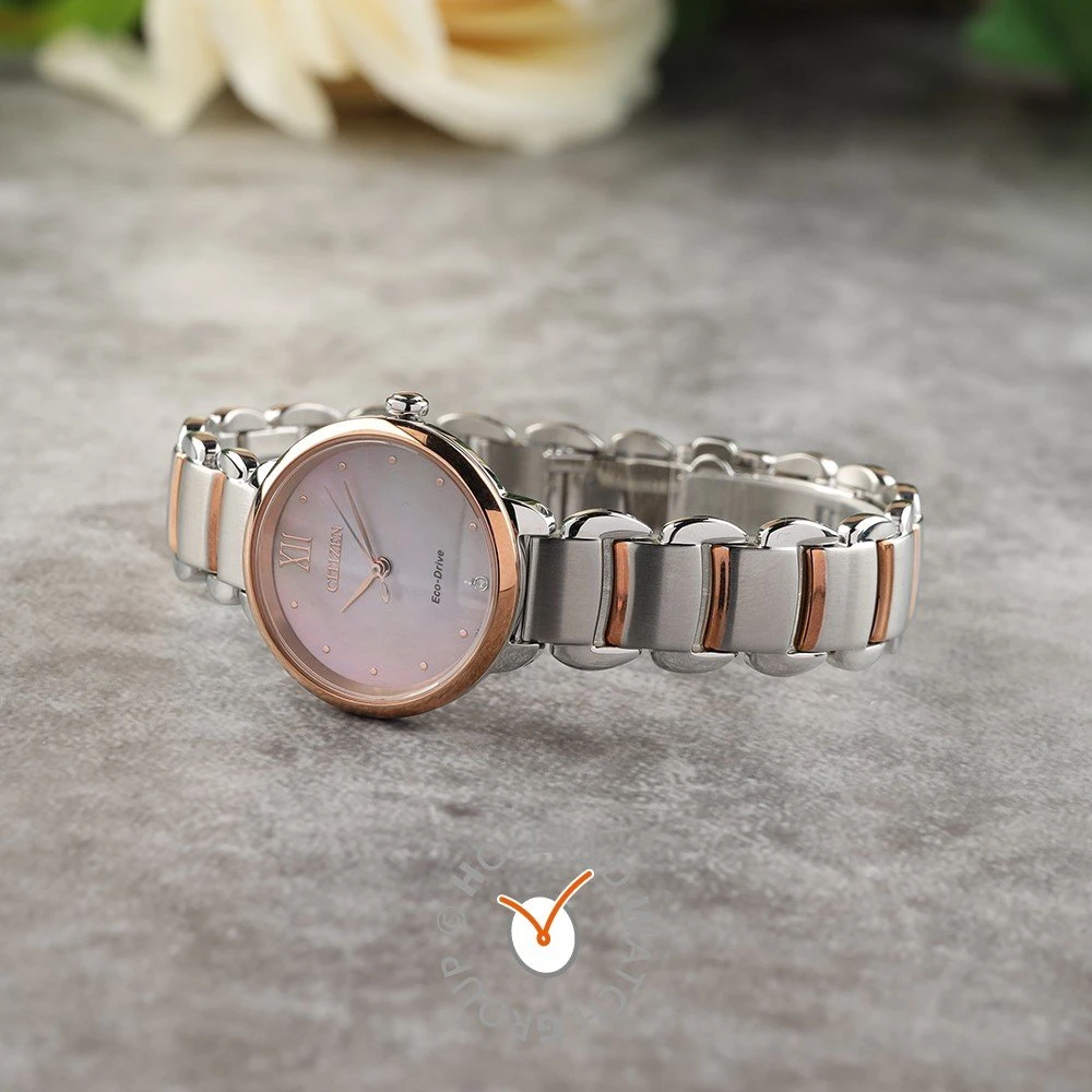 This Citizen watch has a case made of stainless steel with a diameter of 28 mm and is fitted with a metal band. Inside the case lies a Citizen movement and the watch features a Sapphire crystal.