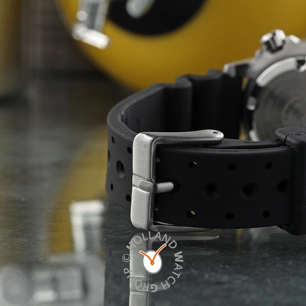 This Citizen watch has a stainless steel case 33.5 mm in diameter and is fitted with a rubber strap. Inside the case lies a Citizen movement and the watch features a Mineral crystal.