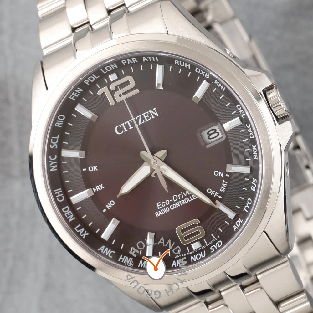 This Citizen watch has a case made of stainless steel with a diameter of 43 mm and is fitted with a metal band. Inside the case lies a Citizen movement and the watch features a Sapphire crystal.