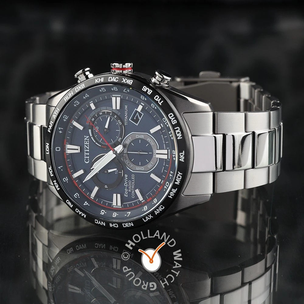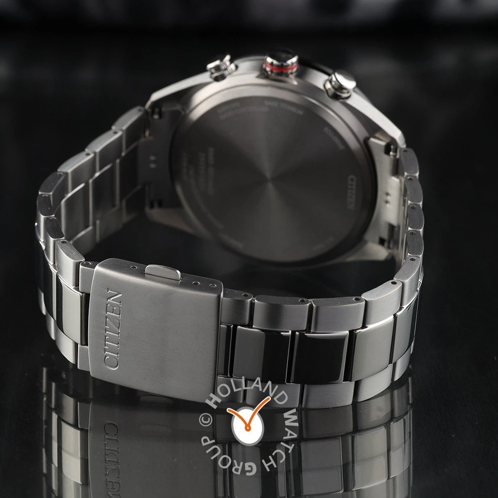 This Citizen watch has a case made of titanium with a diameter of 42.5 mm and is fitted with a titanium band. Inside the case lies a Citizen movement and the watch features a Sapphire crystal.