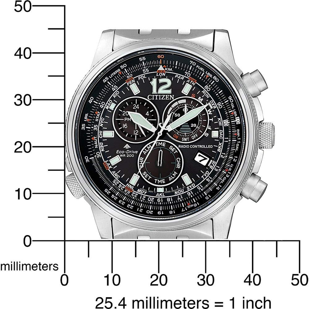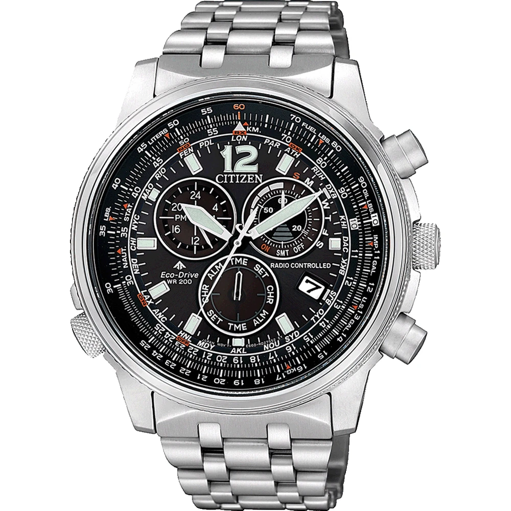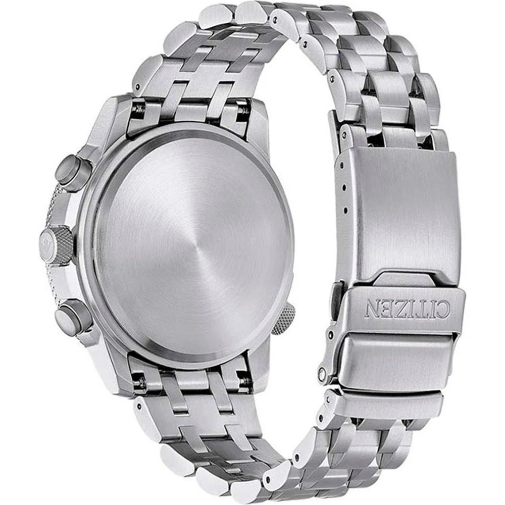 This Citizen watch has a case made of stainless steel with a diameter of 43.7 mm and is fitted with a metal band. Inside the case lies a Citizen movement and the watch features a Single anti-reflective sapphire crystal.