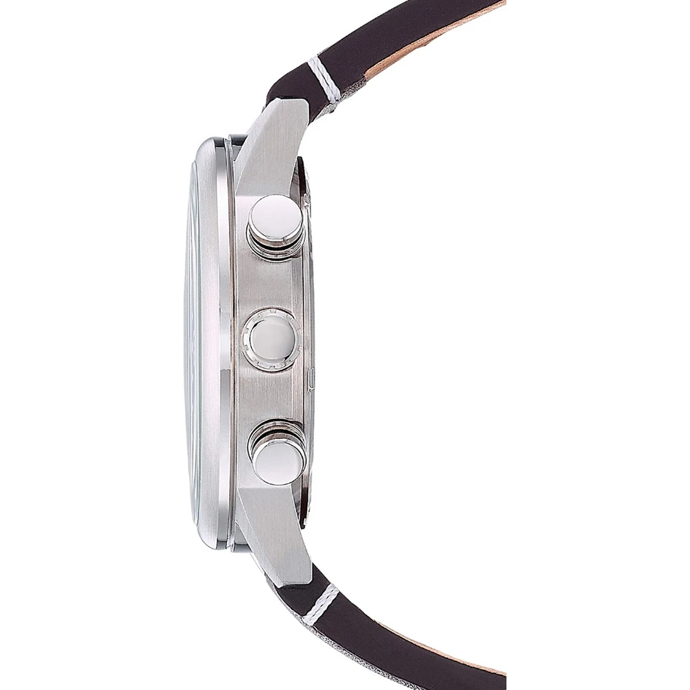 This Citizen watch has a case made of stainless steel with a diameter of 43.1 mm and is fitted with a leather band. Inside the case lies a Citizen movement and the watch features a Mineral crystal.
