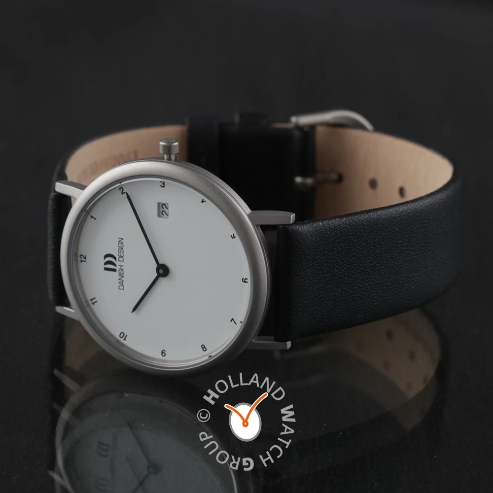 This Danish Design watch has a case made of titanium with a diameter of 34 mm and is fitted with a leather band. Inside the case lies a Miyota movement and the watch features a Mineral crystal.