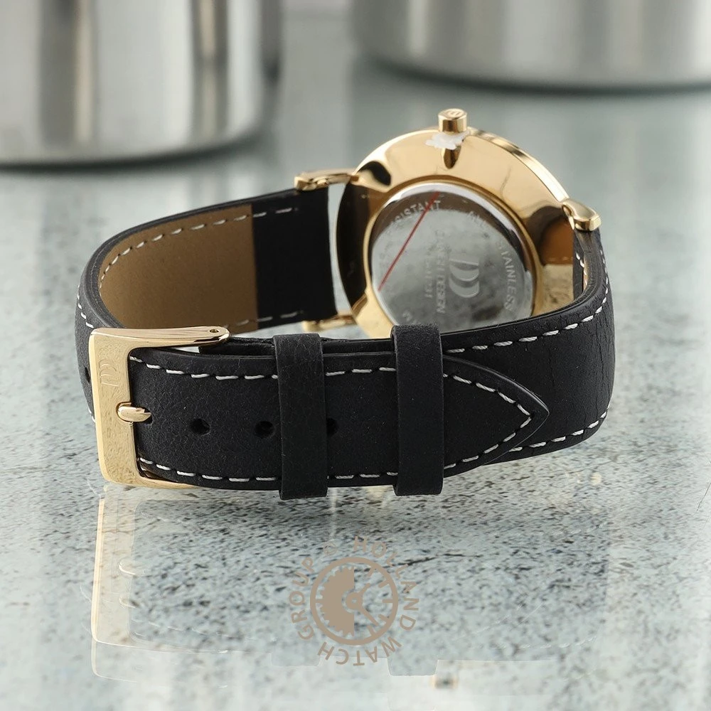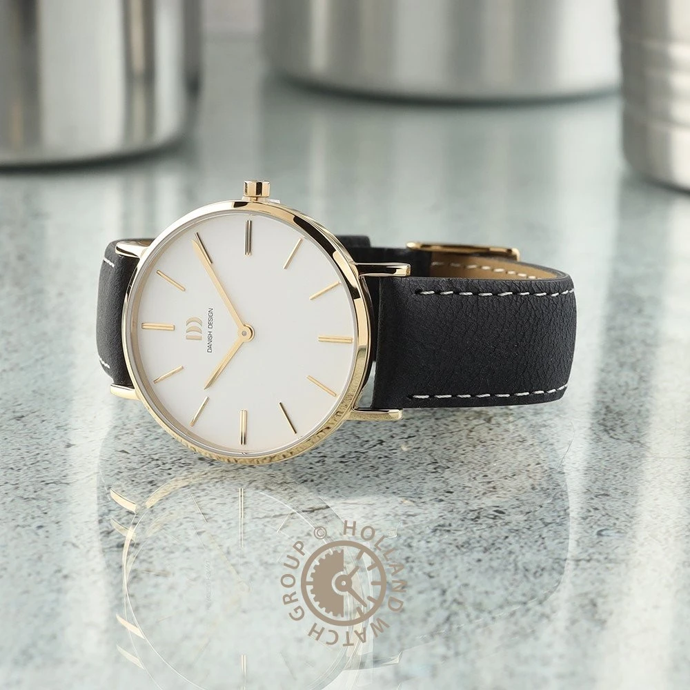 This Danish Design watch has a case made of stainless steel with a diameter of 34 mm and is fitted with a leather band. Inside the case lies a Ronda movement and the watch features a Mineral crystal.
