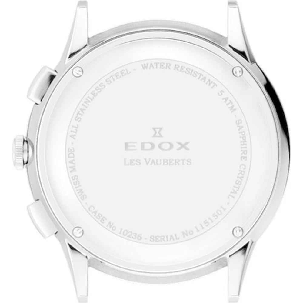 This Edox watch has a case made of stainless steel with a diameter of 42 mm and is fitted with a metal band. Inside the case lies a Ronda movement and the watch features a Sapphire crystal.