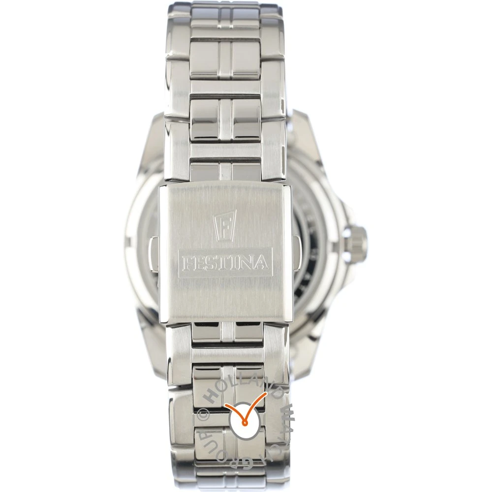 This Festina watch has a case made of stainless steel with a diameter of 43 mm and is fitted with a metal band. Inside the case lies a Miyota movement and the watch features a Mineral crystal.
