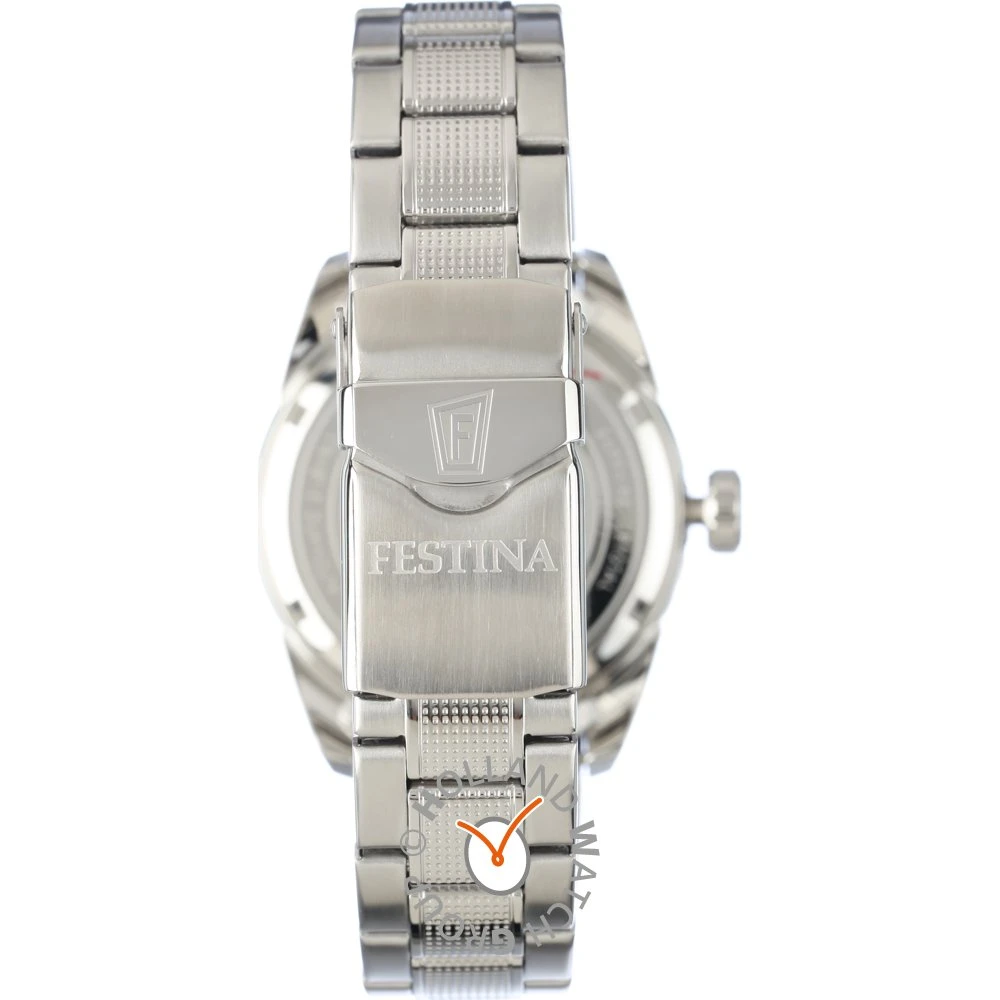 This Festina watch has a case made of stainless steel with a diameter of 41 mm and is fitted with a metal band. Inside the case lies a Miyota movement and the watch features a Sapphire crystal.
