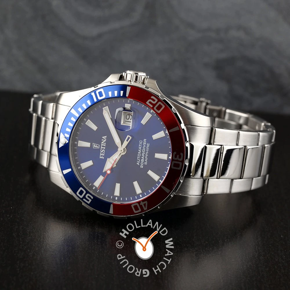 This Festina watch has a case made of stainless steel with a diameter of 44 mm and is fitted with a metal band. Inside the case lies a Miyota movement and the watch features a Sapphire crystal.