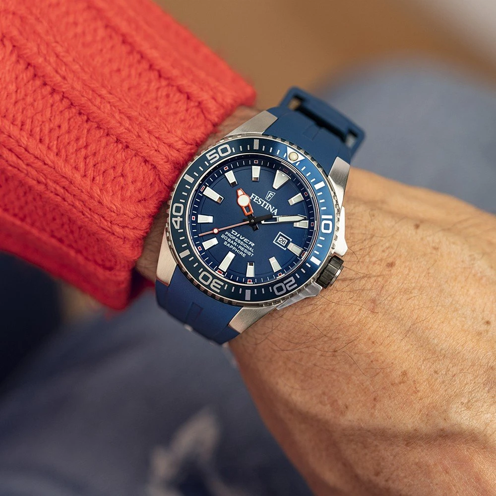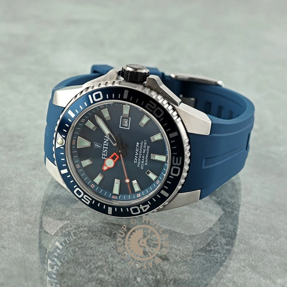 This Festina watch has a case made of stainless steel with a diameter of 45 mm and is fitted with a rubber band. Inside the case lies a Miyota movement and the watch features a Sapphire crystal.