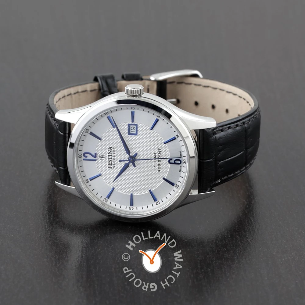 This Festina watch has a case made of stainless steel with a diameter of 40 mm and is fitted with a leather band. Inside the case lies a Ronda movement and the watch features a Sapphire crystal.