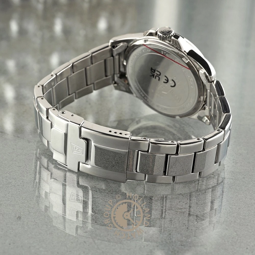 This Festina watch has a case made of stainless steel with a diameter of 41 mm and is fitted with a metal band. Inside the case lies a Ronda movement and the watch features a Mineral crystal.