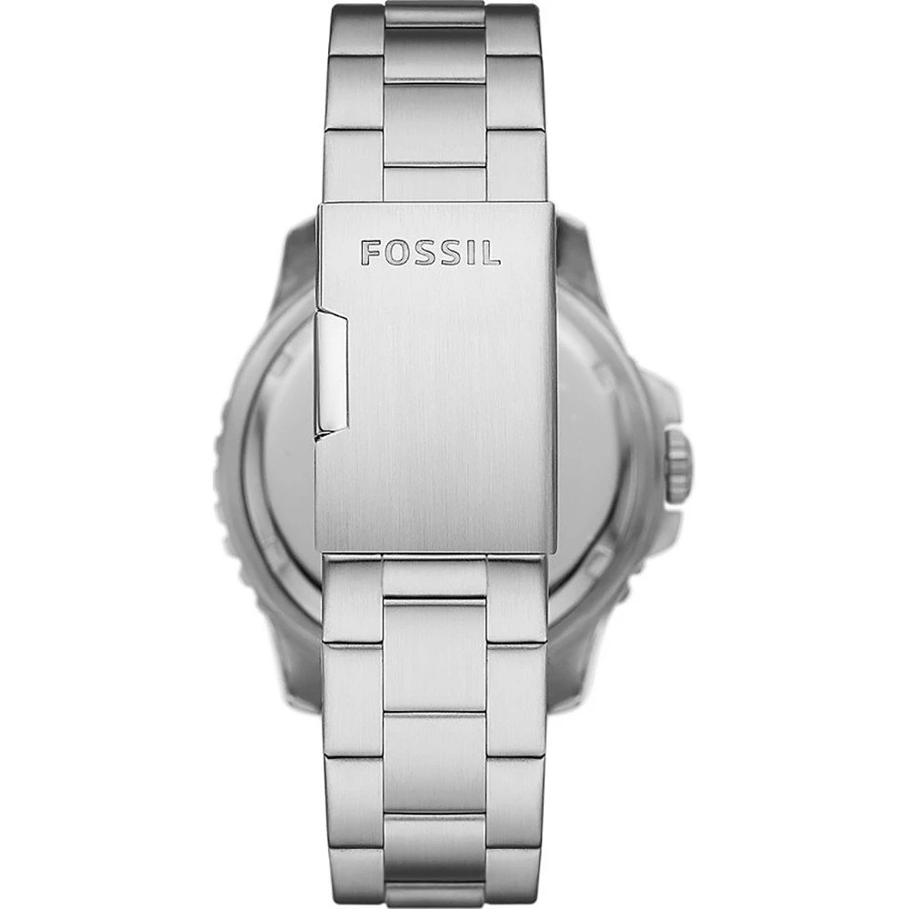 This Fossil watch has a case made of stainless steel with a diameter of 46 mm and is fitted with a metal band. Inside the case lies a Ronda movement and the watch features a Mineral crystal.