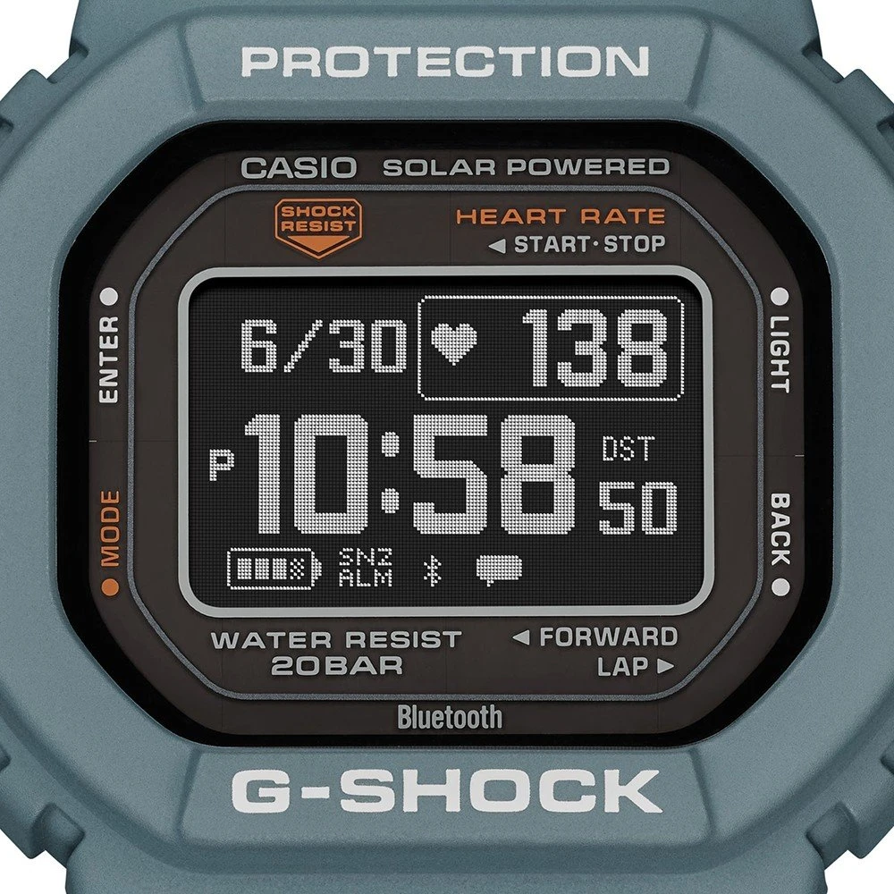 This G-Shock watch has a Bio-sourced plastic case 44 mm in diameter and is fitted with a plastic / resin strap. Inside the case lies a Casio movement and the watch features a Mineral crystal.