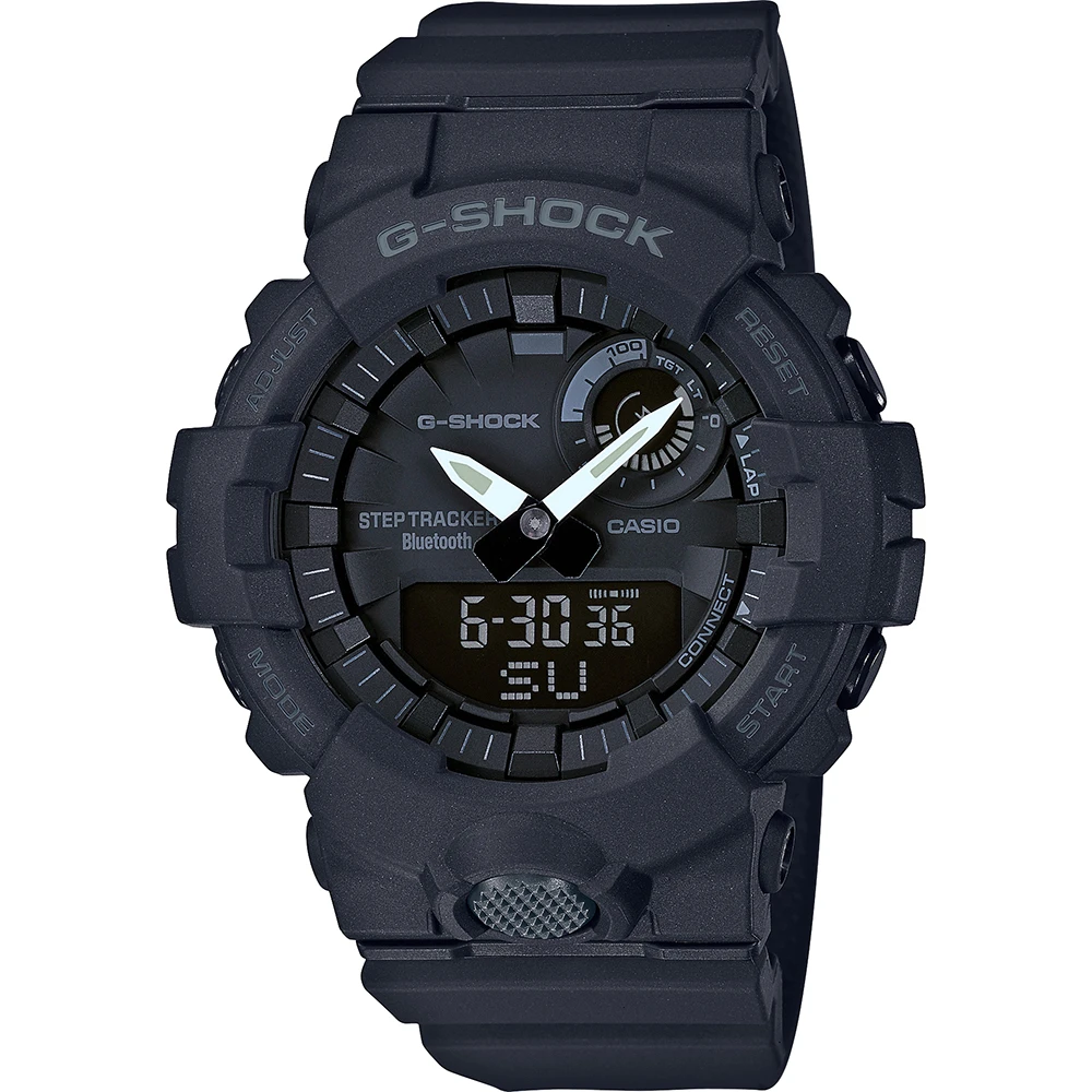 This G-Shock watch has a plastic case 48.6 mm in diameter and is fitted with a plastic / resin strap. Inside the case lies a Casio movement and the watch features a Mineral crystal.