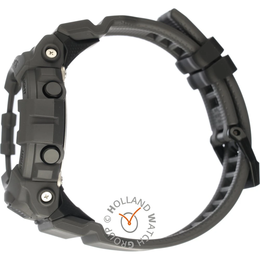 This G-Shock watch has a case made of plastic with a diameter of 48.6 mm and is fitted with a rubber band. Inside the case lies a Casio movement and the watch features a Mineral crystal.