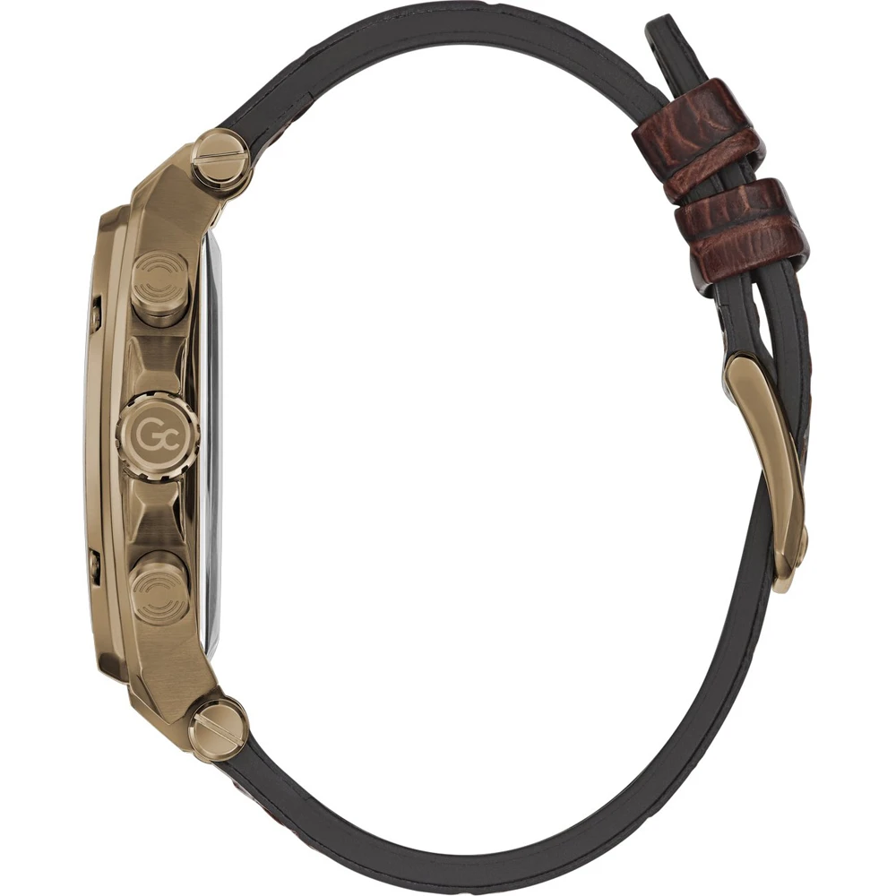This GC watch has a case made of stainless steel with a diameter of 44 mm and is fitted with a rubber band. Inside the case lies a Ronda movement and the watch features a Sapphire coated mineral crystal.