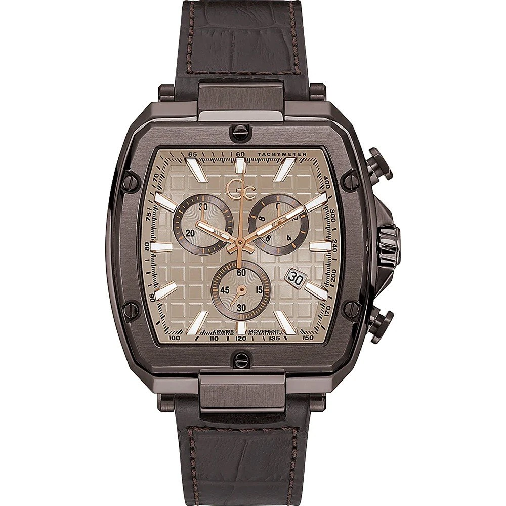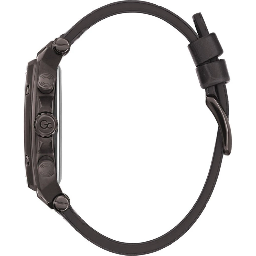This GC watch has a case made of stainless steel with a diameter of 44 mm and is fitted with a rubber band. Inside the case lies a Ronda movement and the watch features a Sapphire coated mineral crystal.