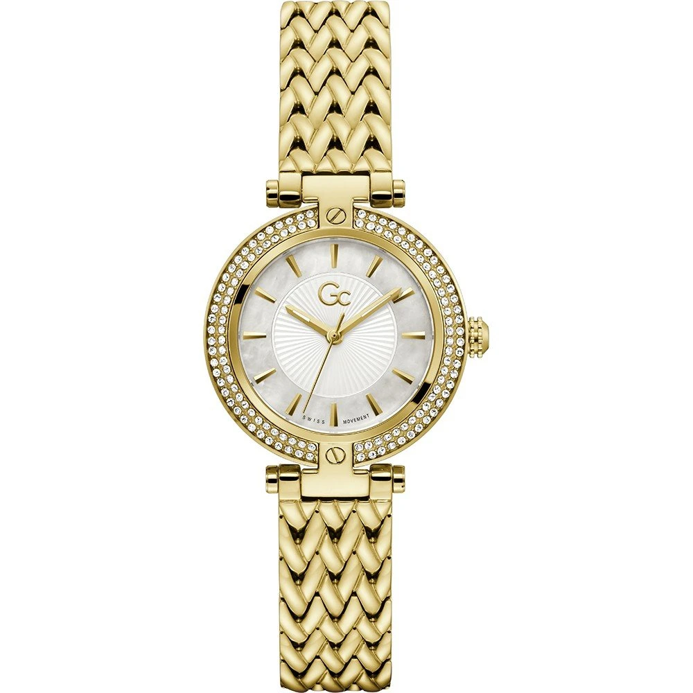 This GC watch has a case made of stainless steel with a diameter of 32 mm and is fitted with a metal band.