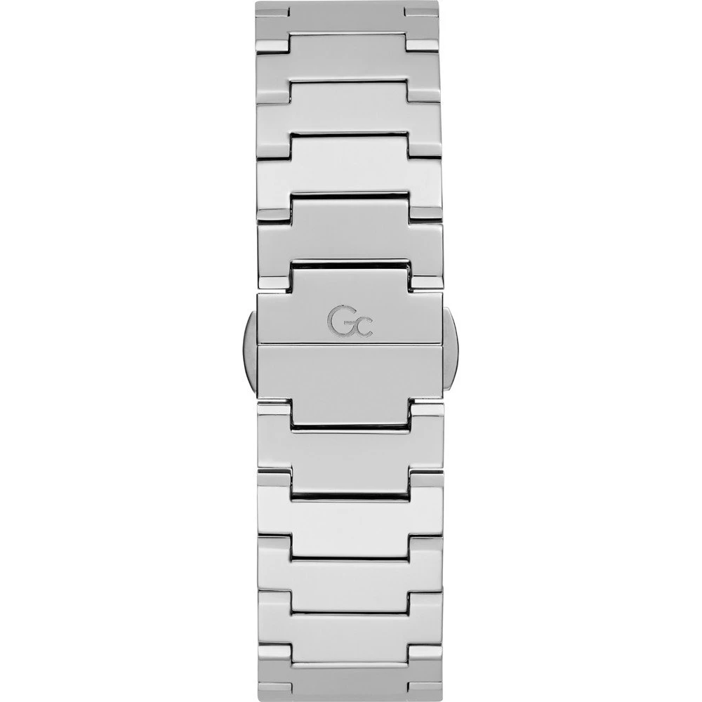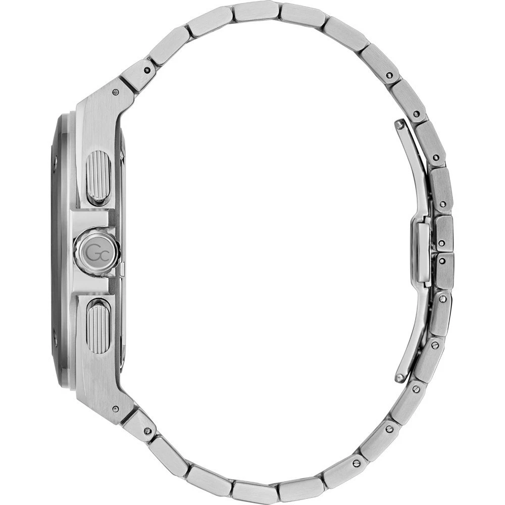 This GC watch has a case made of stainless steel with a diameter of 44 mm and is fitted with a metal band. Inside the case lies a Ronda movement and the watch features a Sapphire coated mineral crystal.