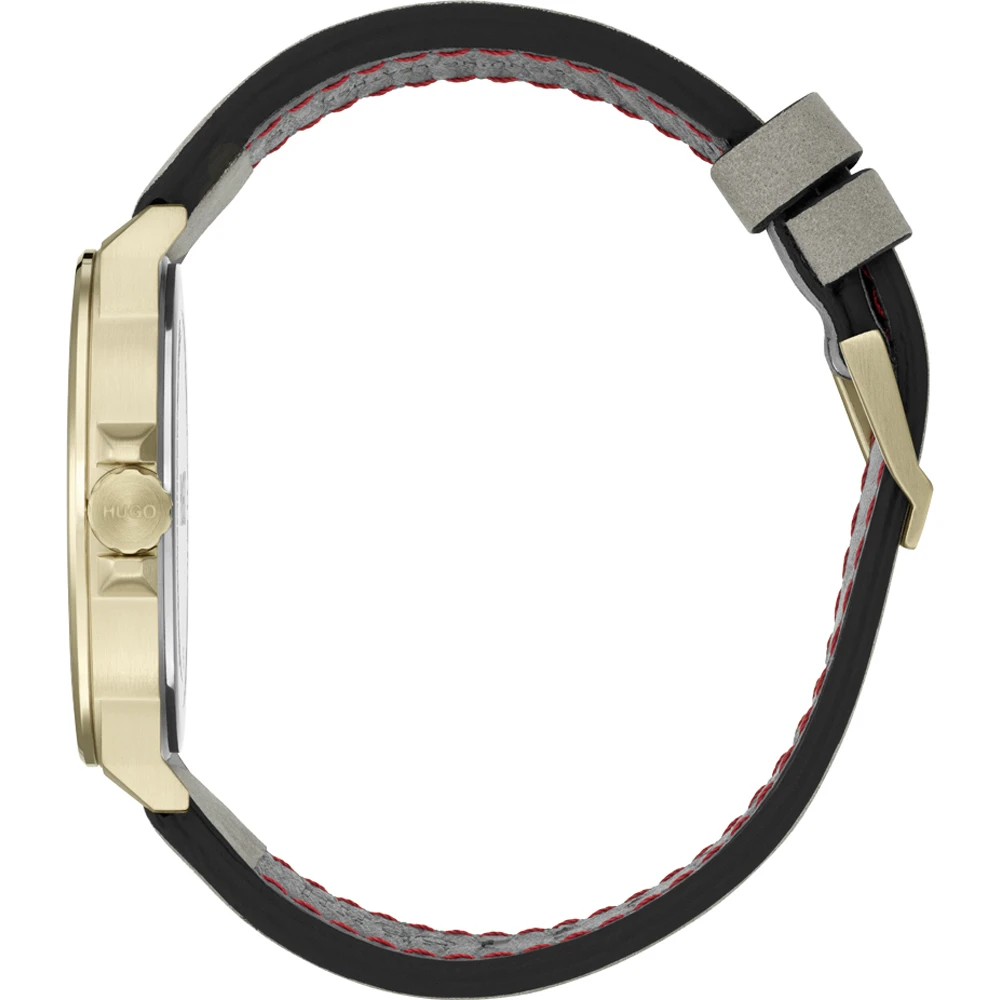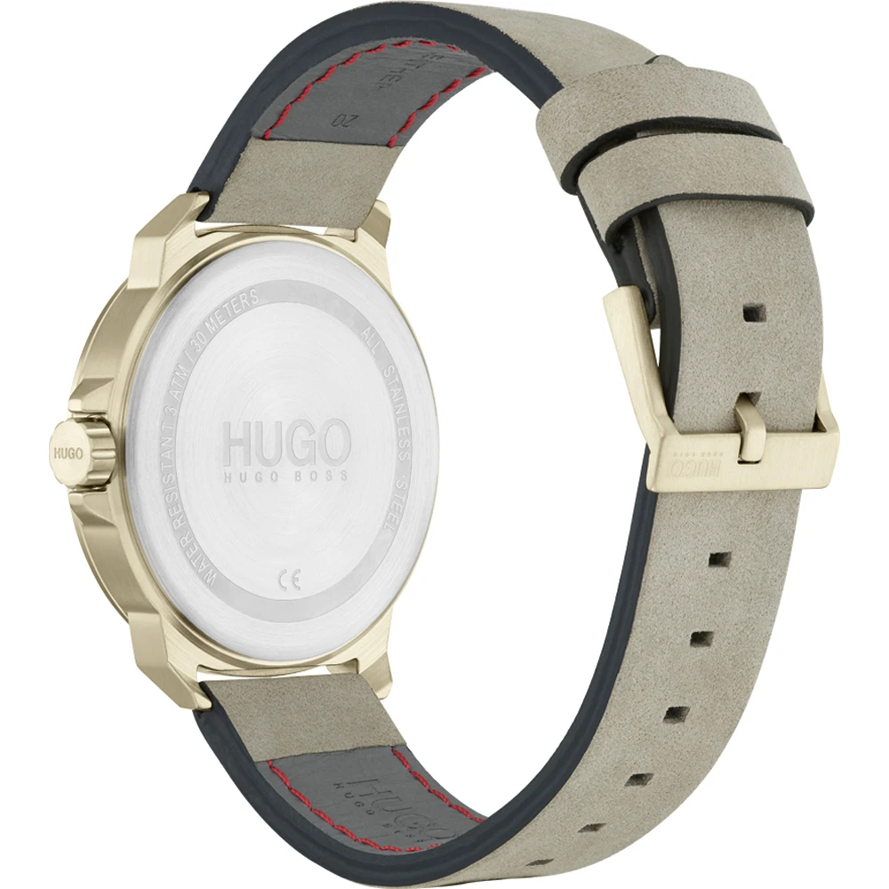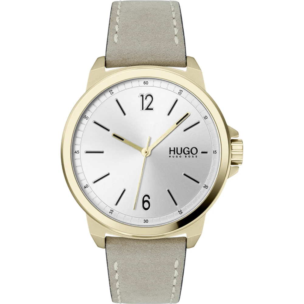 This Hugo Boss watch has a case made of stainless steel with a diameter of 44 mm and is fitted with a leather band. Inside the case lies a Seiko movement and the watch features a Mineral crystal.
