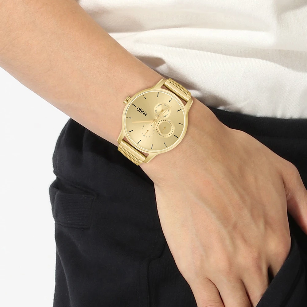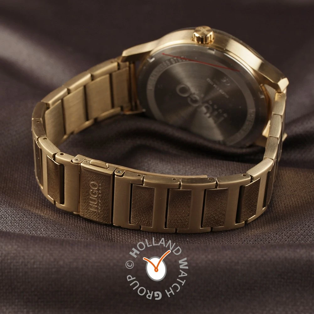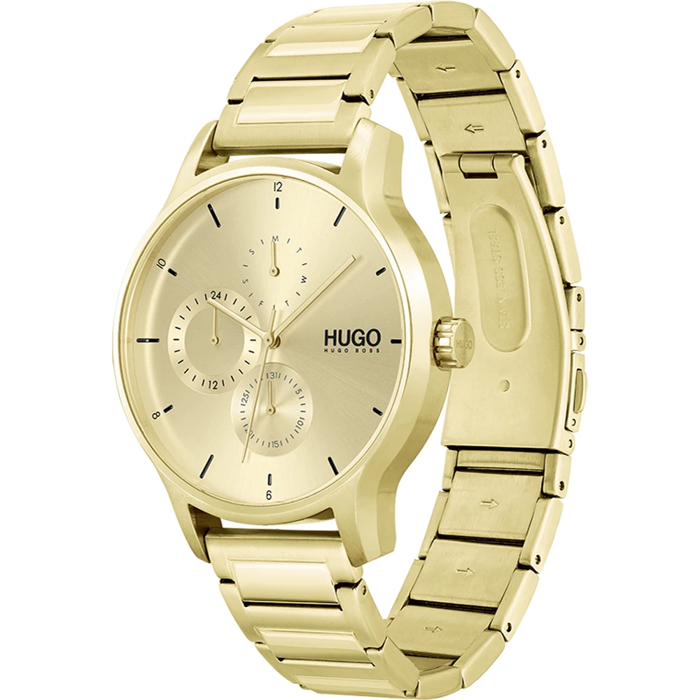 This Hugo Boss watch has a case made of stainless steel with a diameter of 44 mm and is fitted with a metal band. Inside the case lies a Seiko Instruments Inc. movement and the watch features a Mineral crystal.