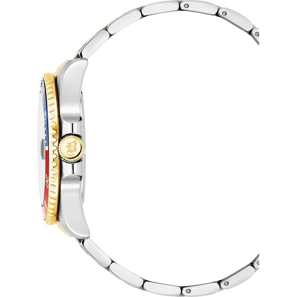 This Jacques du Manoir watch has a case made of stainless steel with a diameter of 43 mm and is fitted with a metal band. Inside the case lies a Ronda movement and the watch features a Mineral crystal.