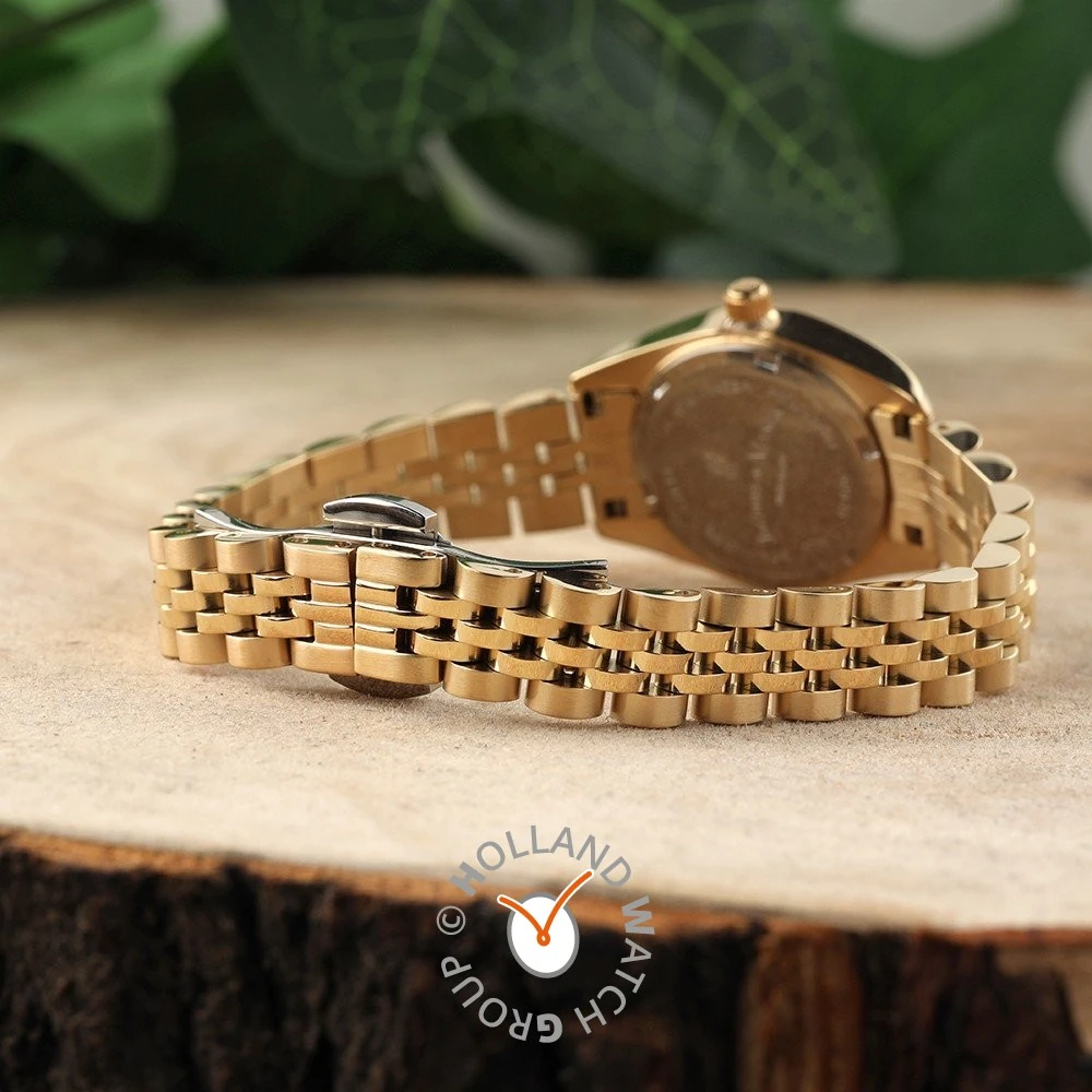 This Jacques du Manoir watch has a case made of stainless steel with a diameter of 26 mm and is fitted with a metal band.