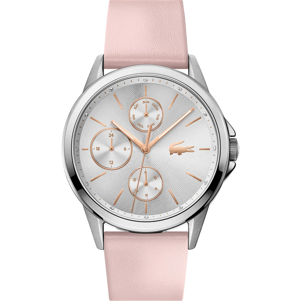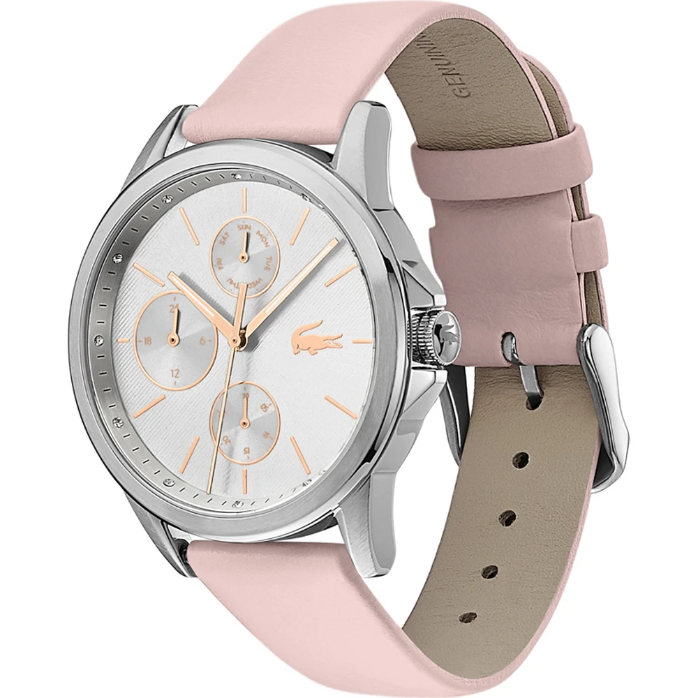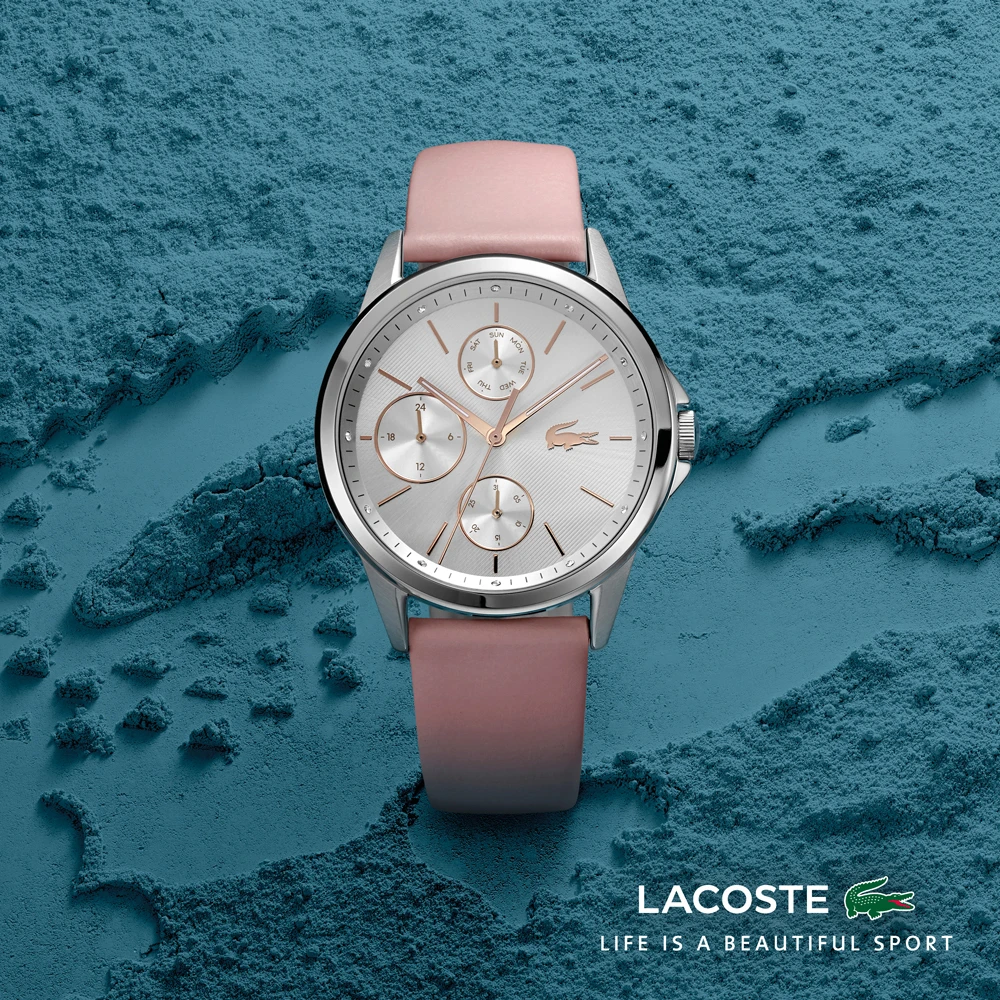 This Lacoste watch has a case made of stainless steel with a diameter of 40 mm and is fitted with a leather band. Inside the case lies a Seiko Instruments Inc. movement and the watch features a Mineral crystal.