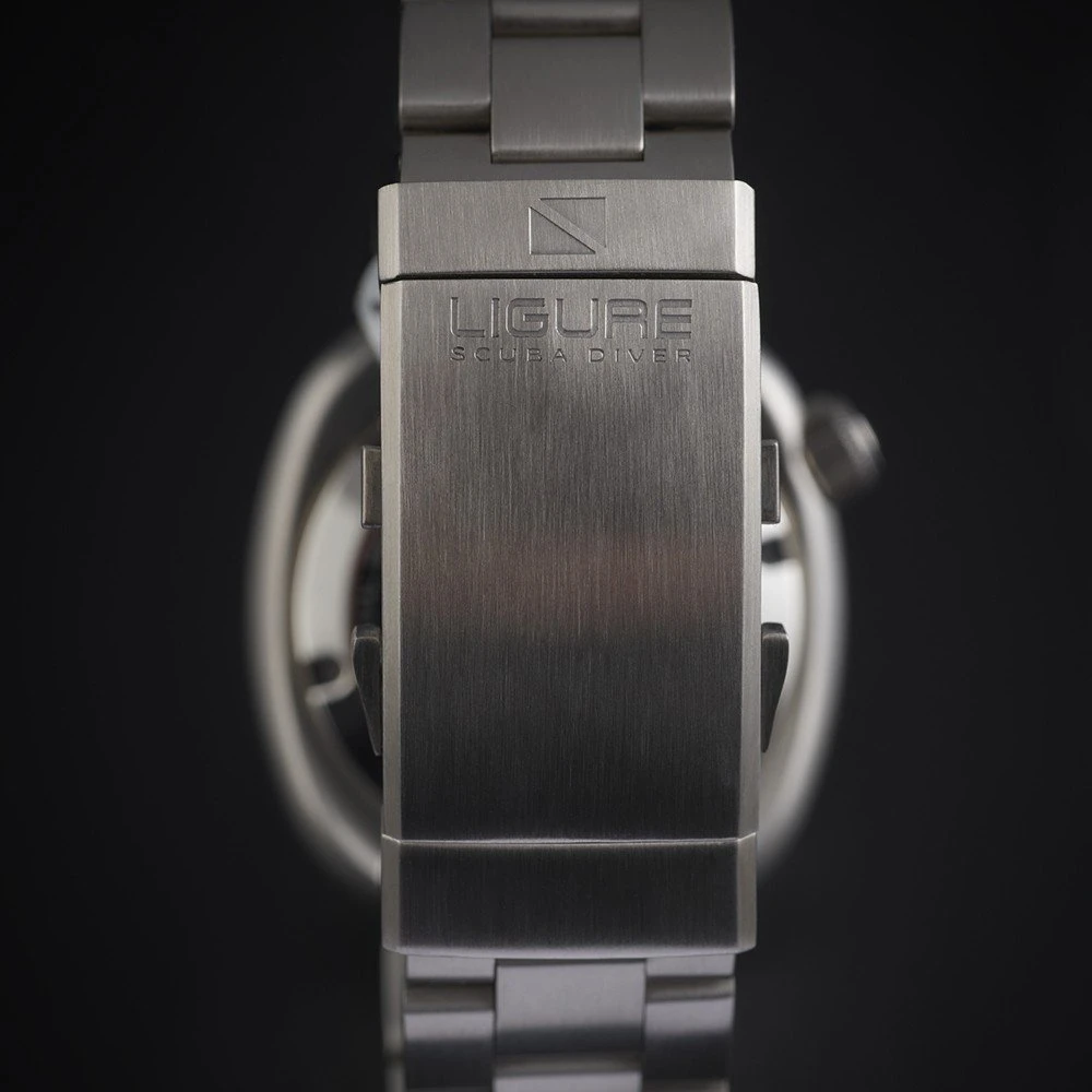 This Ligure watch has a case made of stainless steel with a diameter of 41 mm and is fitted with a metal band. Inside the case lies a Sellita movement and the watch features a Sapphire crystal.