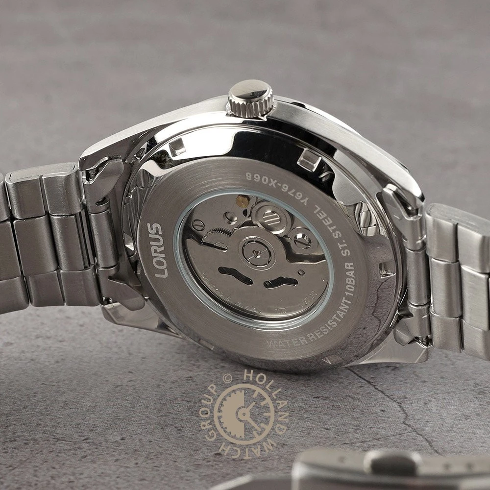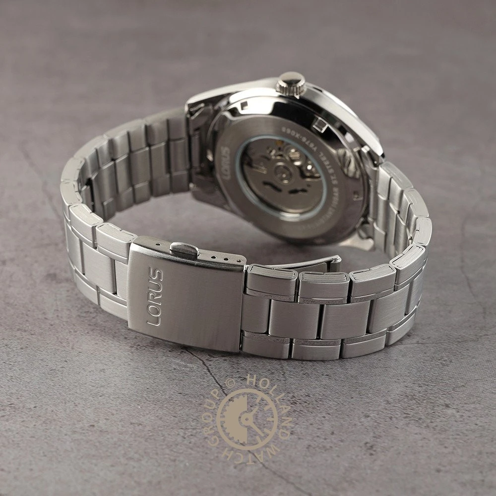 This Lorus watch has a case made of stainless steel with a diameter of 42.5 mm and is fitted with a metal band. Inside the case lies a Seiko Instruments Inc. movement and the watch features a Hardlex crystal crystal.