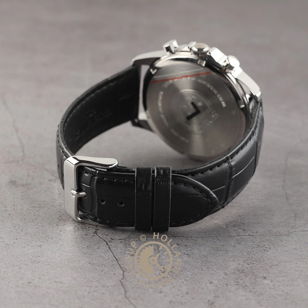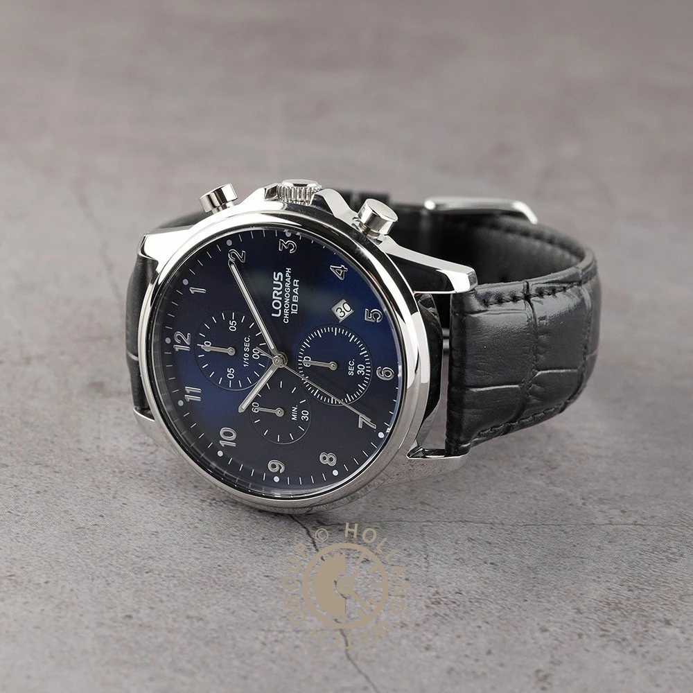 This Lorus watch has a case made of stainless steel with a diameter of 43 mm and is fitted with a leather band. Inside the case lies a Seiko Instruments Inc. movement and the watch features a Hardlex crystal crystal.