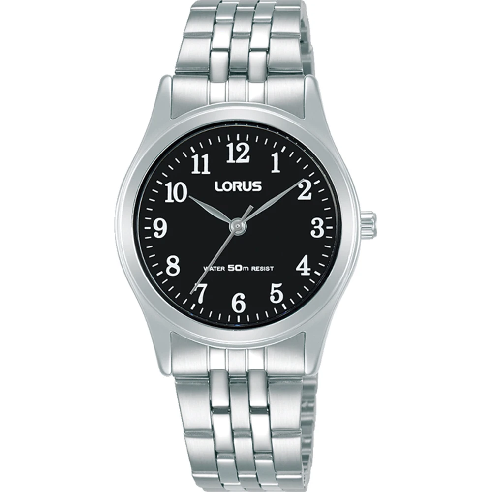 This Lorus watch has a case made of metal alloy with a diameter of 30 mm and is fitted with a metal band. Inside the case lies a Seiko movement and the watch features a Hardlex crystal crystal.