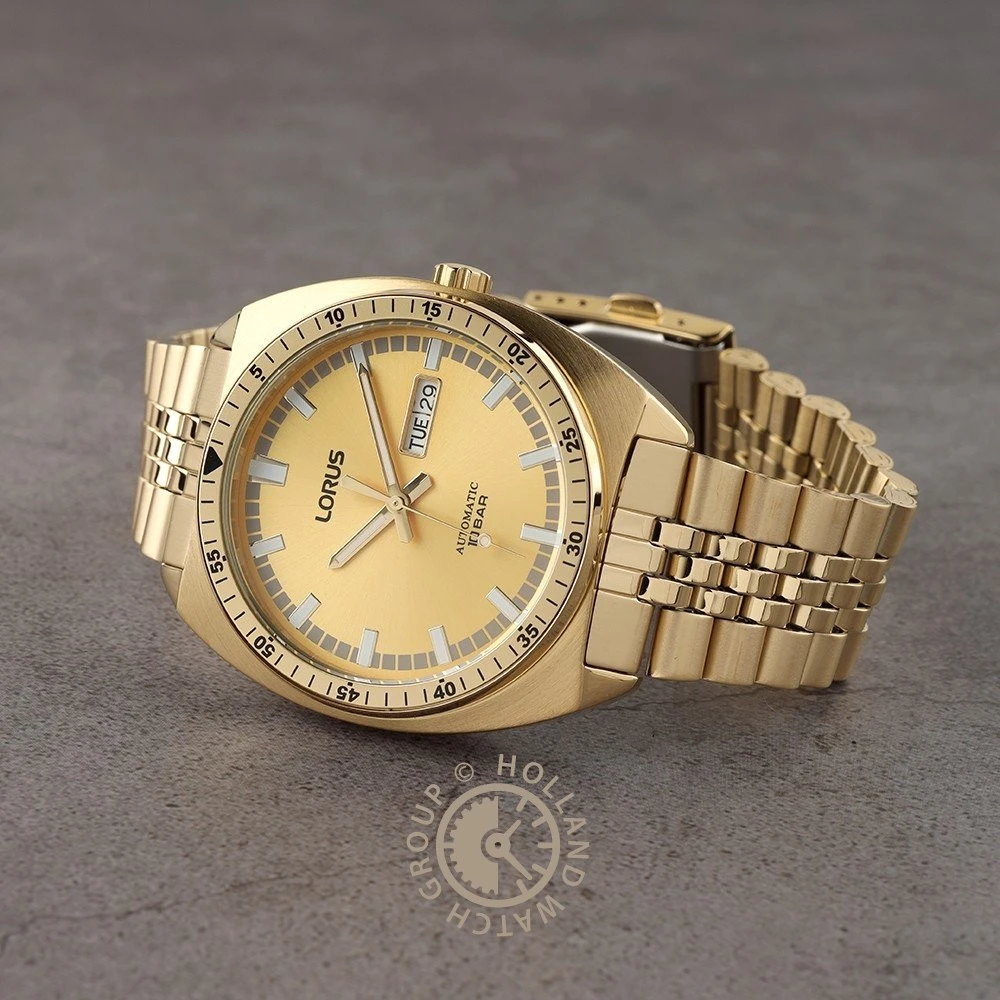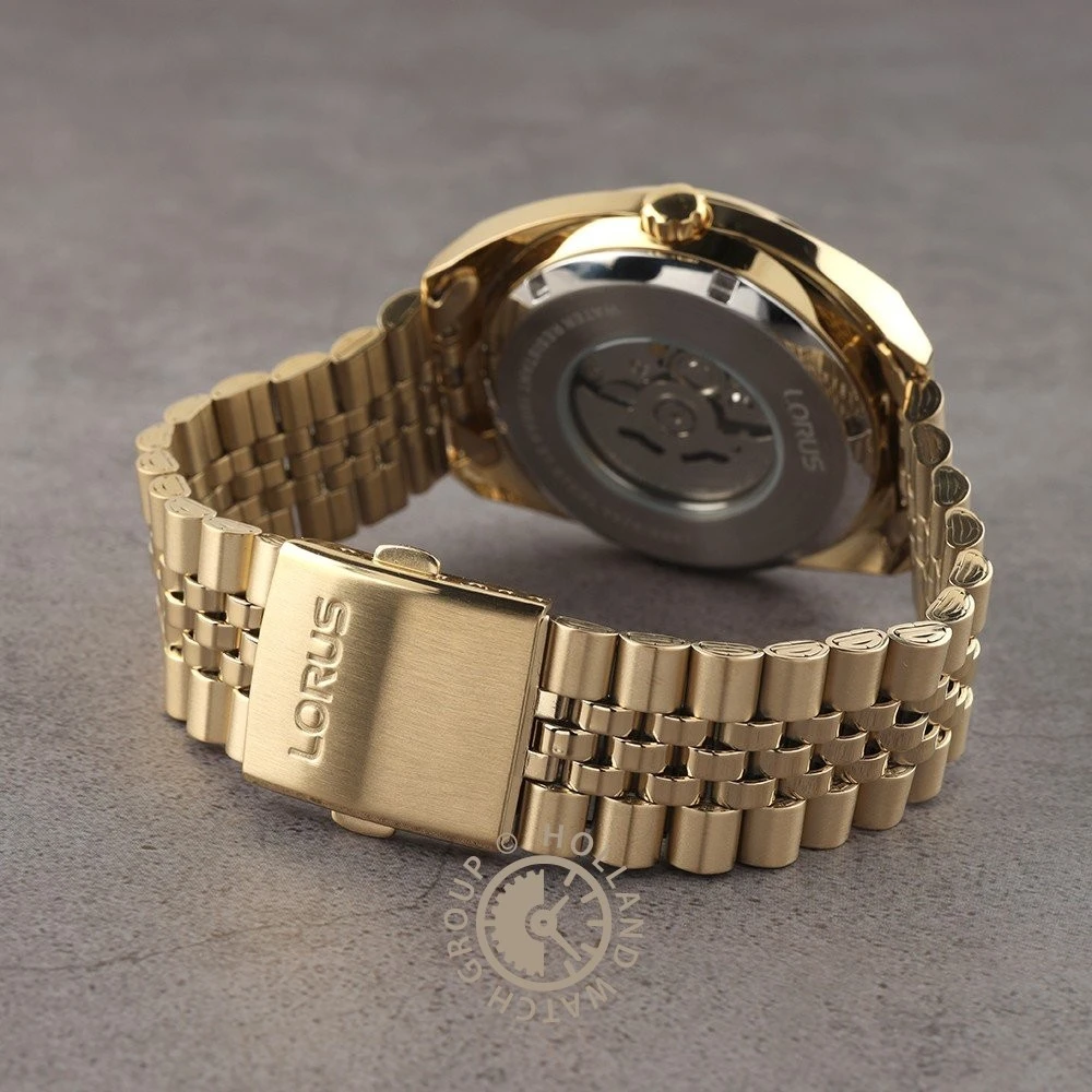 This Lorus watch has a case made of stainless steel with a diameter of 43 mm and is fitted with a metal band. Inside the case lies a Seiko Instruments Inc. movement and the watch features a Hardlex crystal crystal.