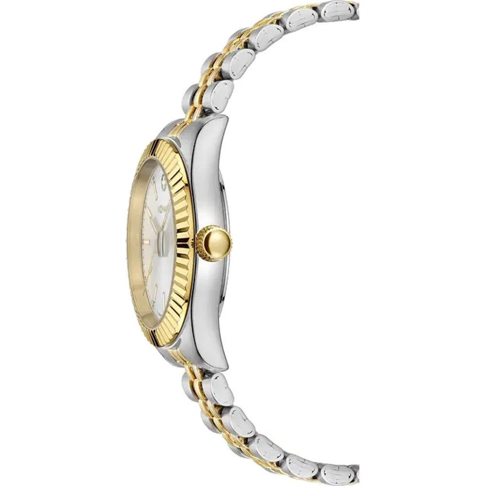 This M-Watch by Mondaine watch has a case made of stainless steel with a diameter of 36 mm and is fitted with a metal band. Inside the case lies a Ronda movement and the watch features a Hardened mineral crystal.
