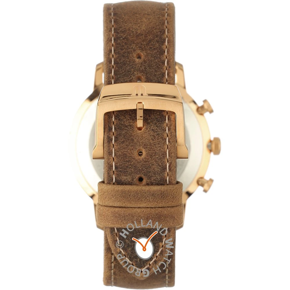 This Maurice Lacroix watch has a case made of stainless steel with a diameter of 40 mm and is fitted with a leather band. Inside the case lies a Ronda movement and the watch features a Sapphire crystal.