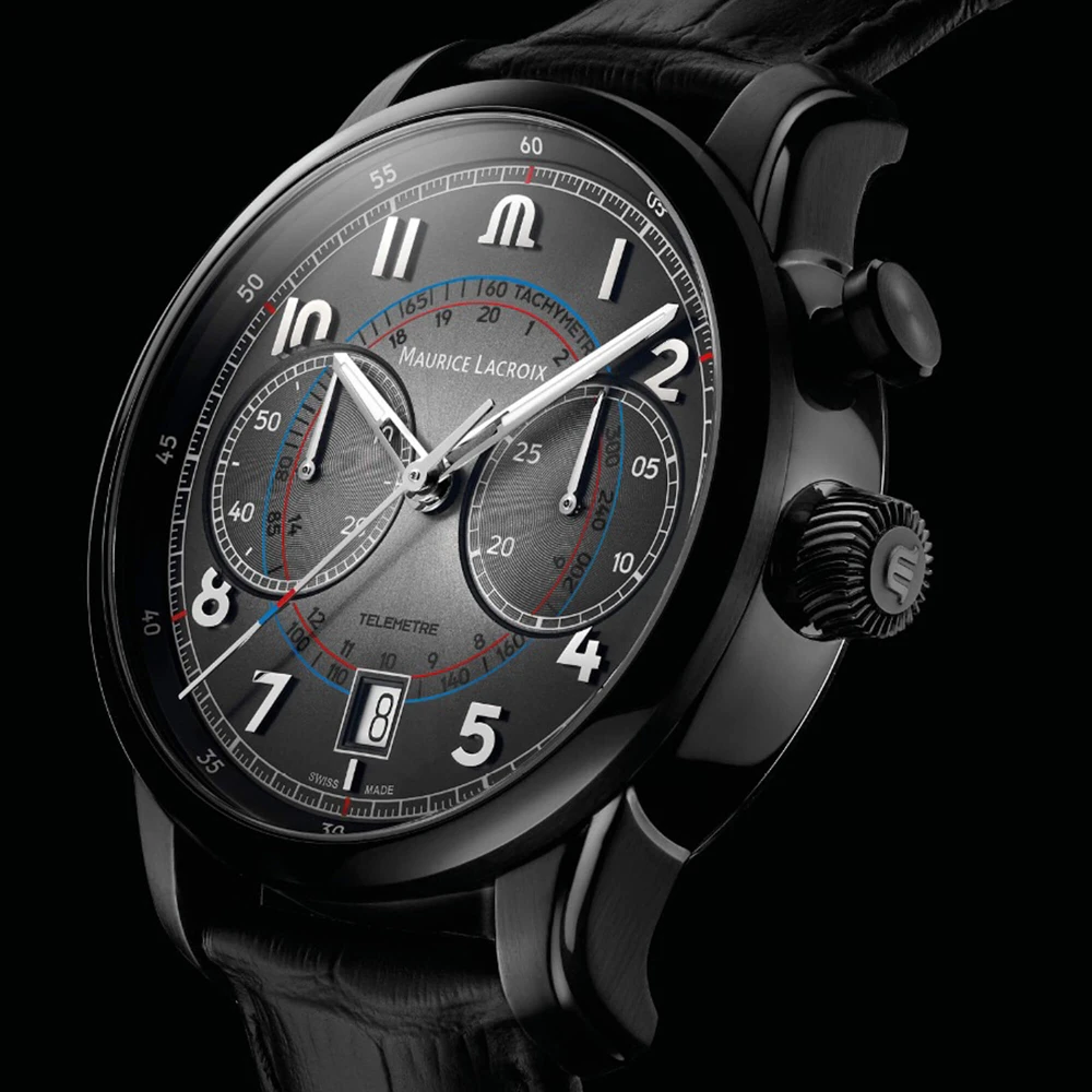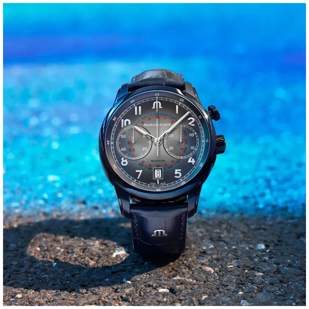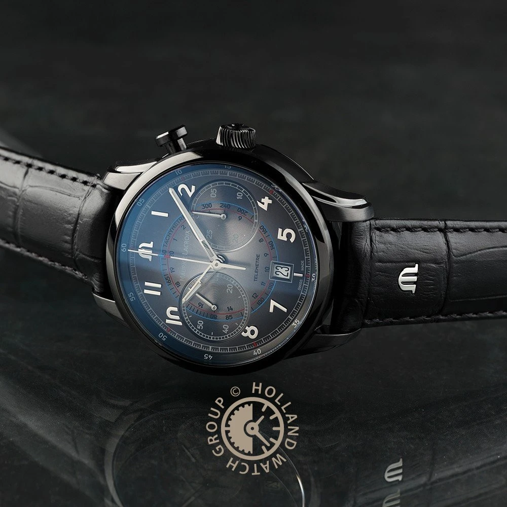 This Maurice Lacroix watch has a case made of stainless steel with a diameter of 41 mm and is fitted with a leather band. Inside the case lies a ML movement and the watch features a Sapphire crystal.