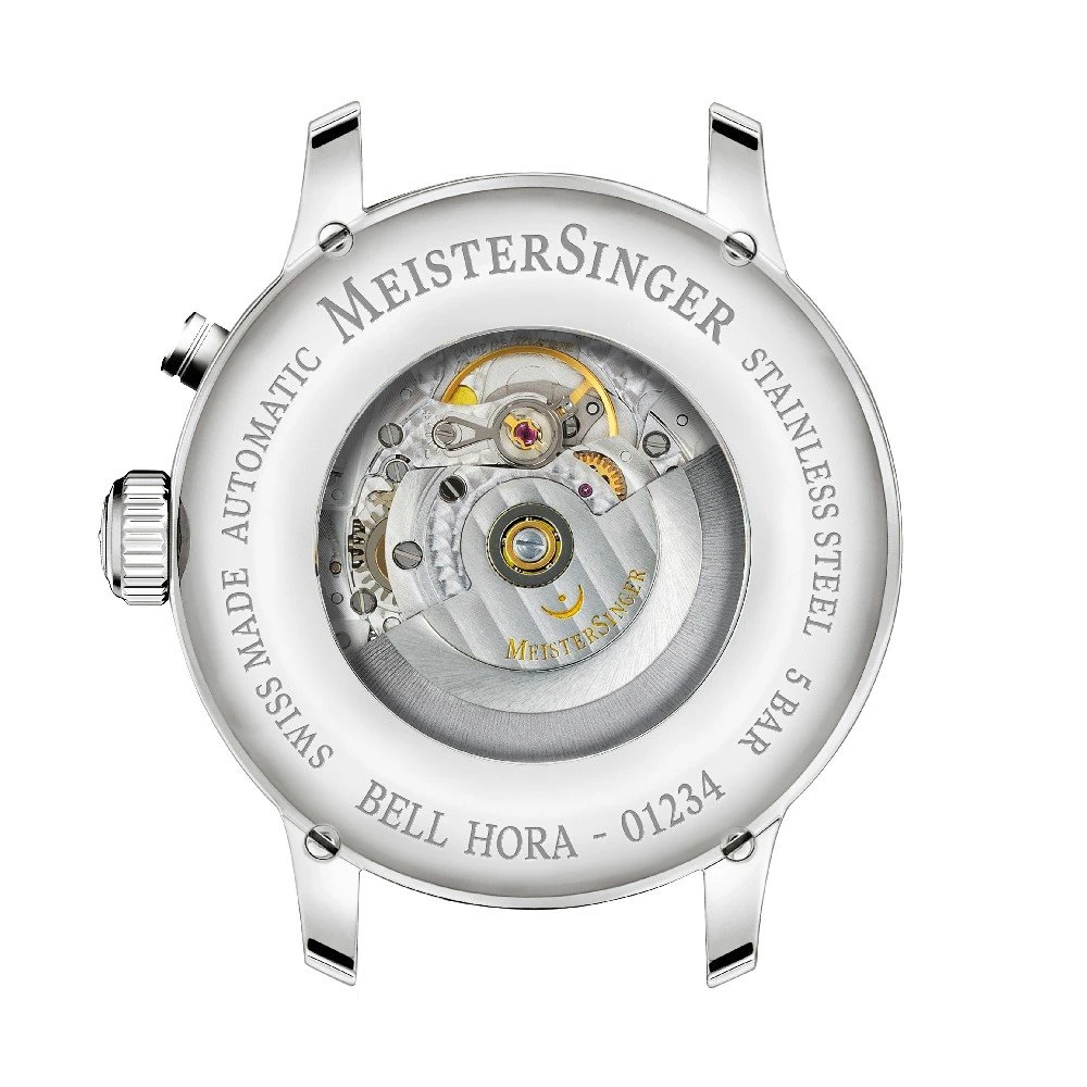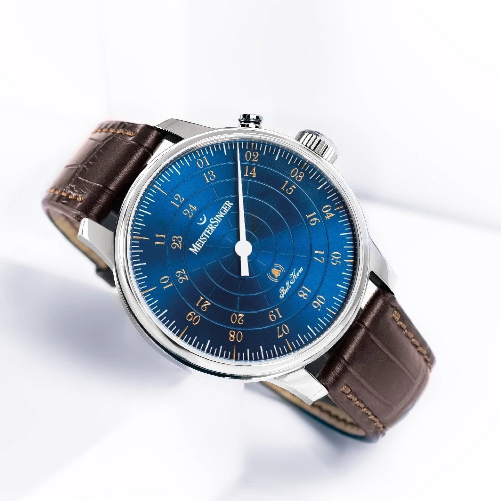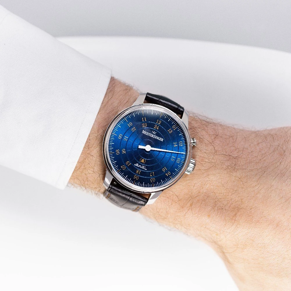 This Meistersinger watch has a case made of stainless steel with a diameter of 43 mm and is fitted with a leather band. Inside the case lies a Meistersinger movement and the watch features a Sapphire crystal.