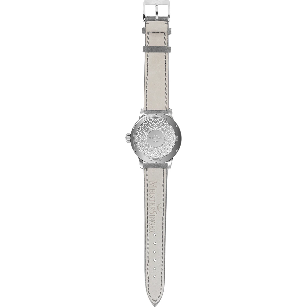 This Meistersinger watch has a case made of stainless steel with a diameter of 40 mm and is fitted with a leather band. Inside the case lies a ETA movement and the watch features a Plexi crystal.
