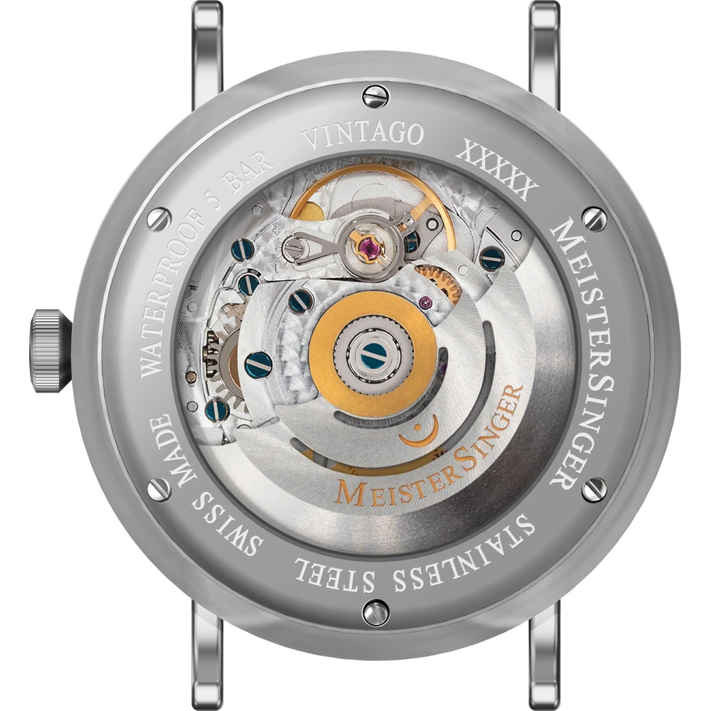 This Meistersinger watch has a case made of stainless steel with a diameter of 43 mm and is fitted with a leather band. Inside the case lies a ETA movement and the watch features a Sapphire crystal.