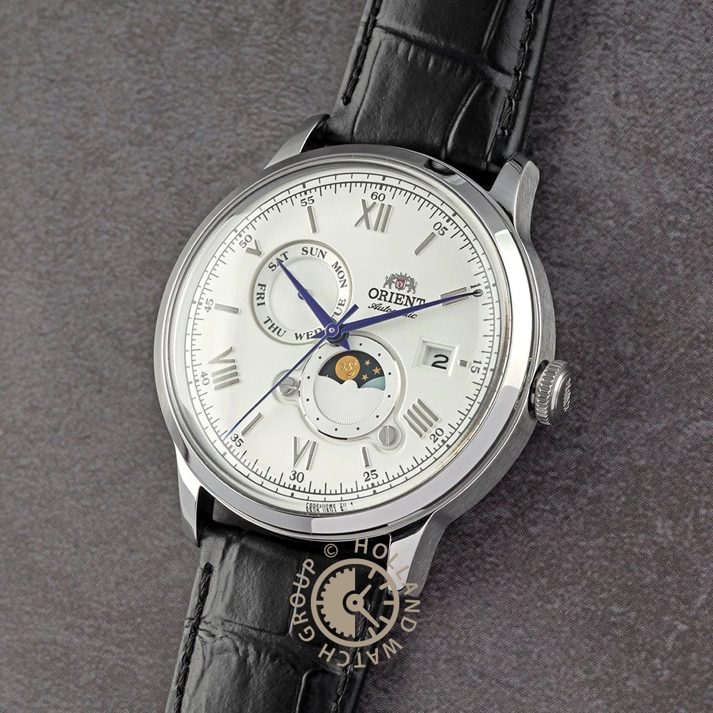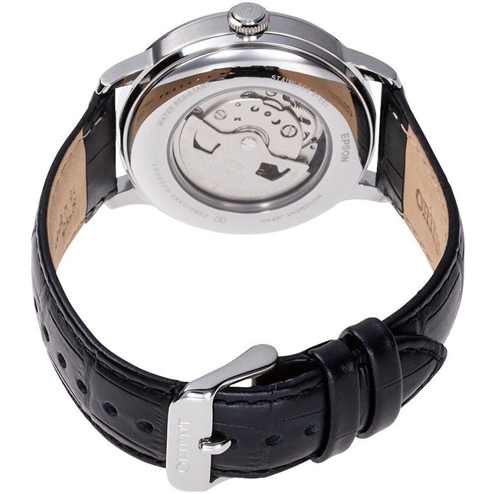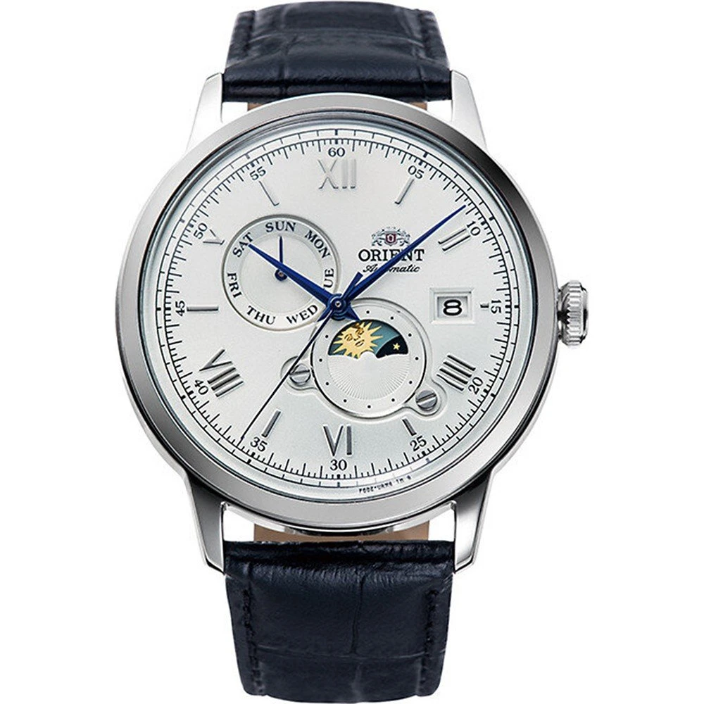 This Orient watch has a case made of stainless steel with a diameter of 41.5 mm and is fitted with a leather band. Inside the case lies a Seiko Instruments Inc. movement and the watch features a Mineral crystal.