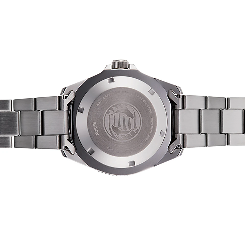 This Orient watch has a stainless steel case 44 mm in diameter and is fitted with a metal strap. Inside the case lies a Orient movement and the watch features a Mineral crystal.